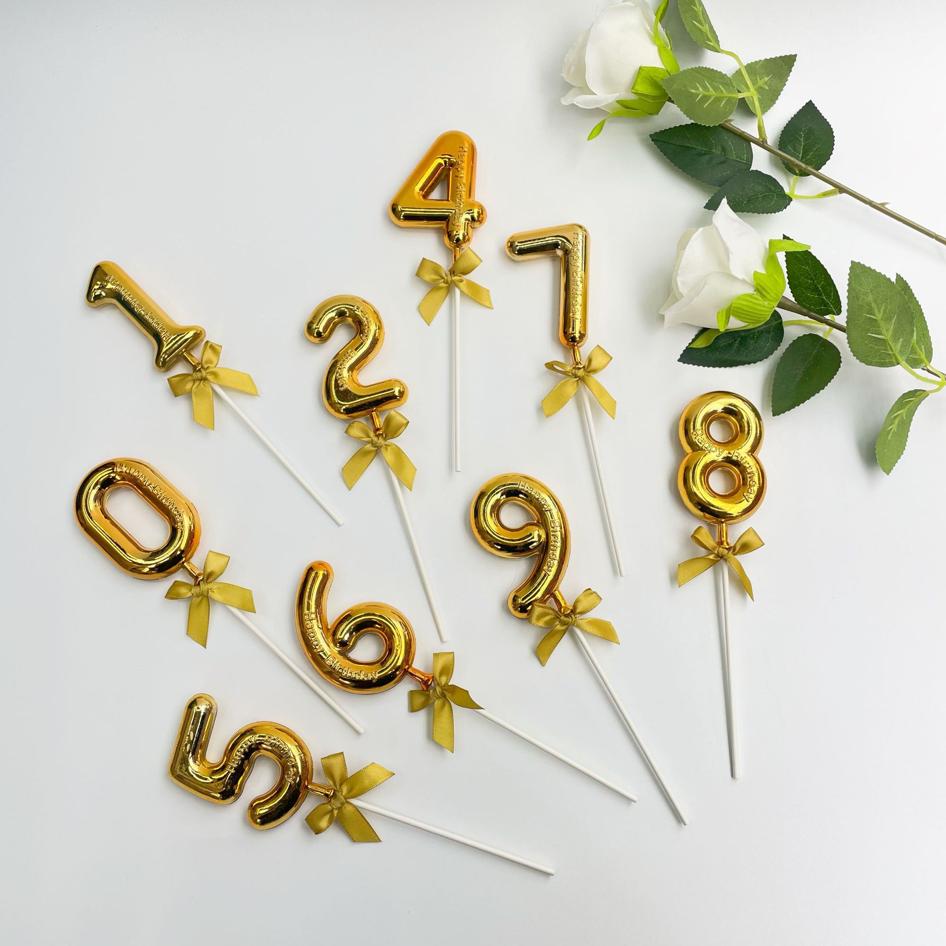 新款跨境镀金塑料数字生日蜡烛套装派对蛋糕数字烘焙店装饰插件