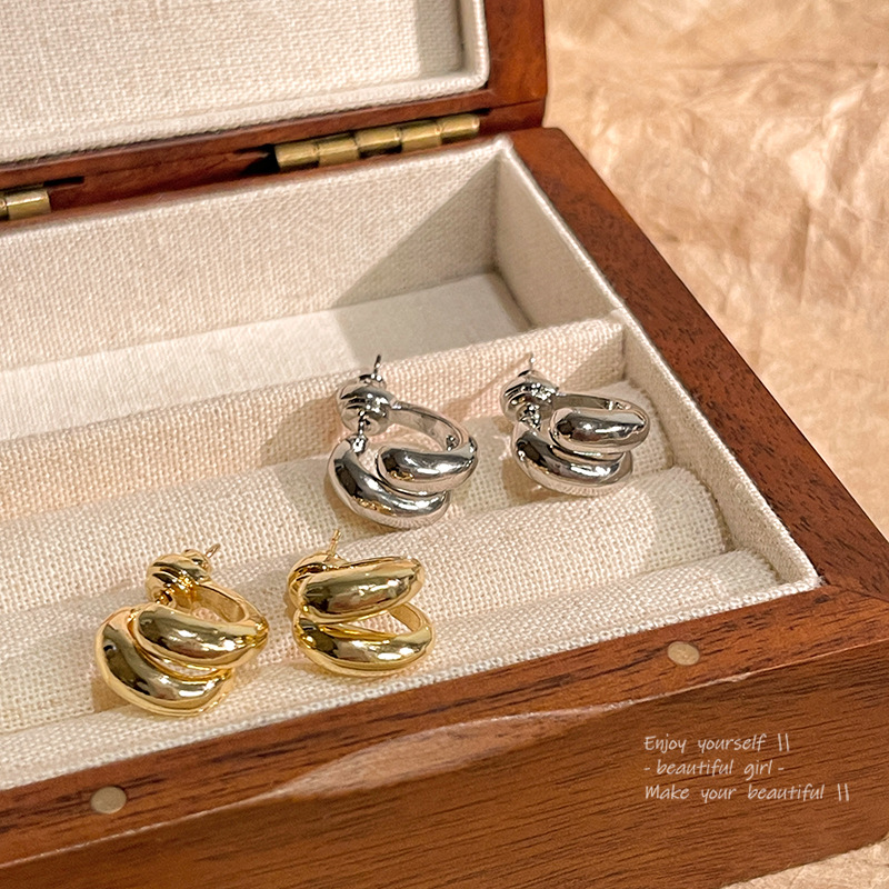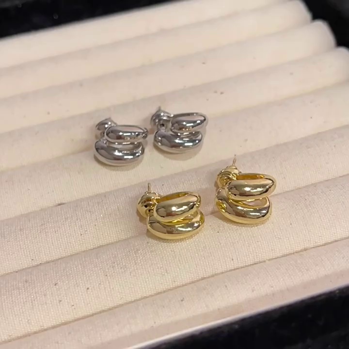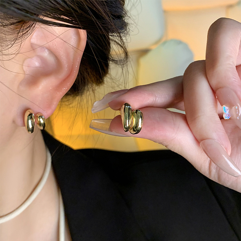 S925银针百搭气质网红同款金属感耳环轻奢小众冷淡风双圆圈耳钉女