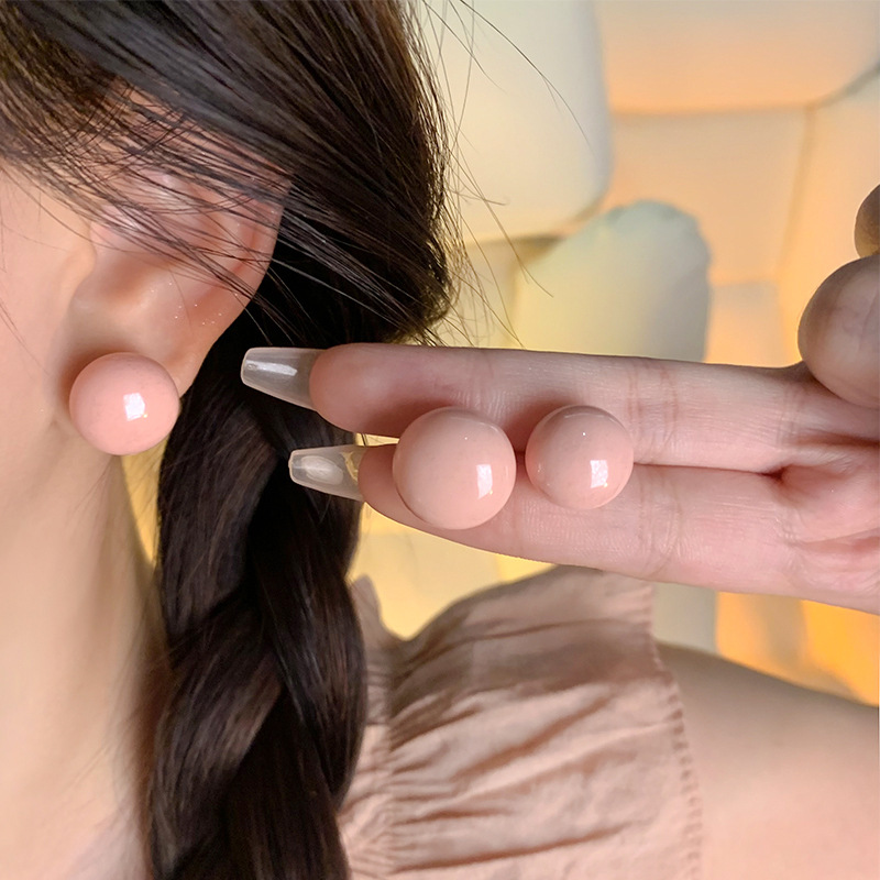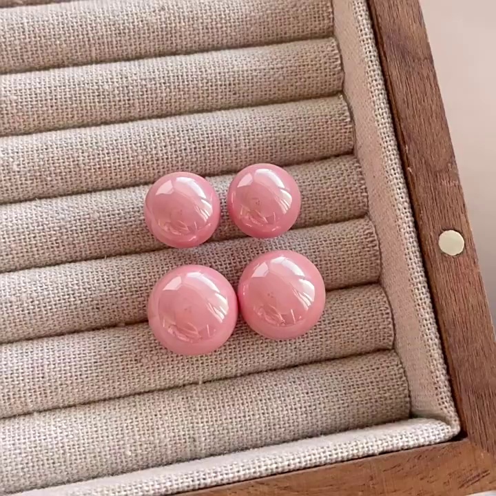 S925银针轻奢小众百搭气质简约耳钉耳饰粉色少女心馒头珍珠耳钉女