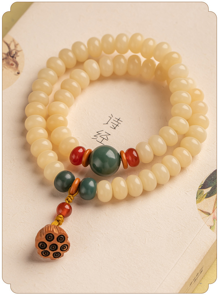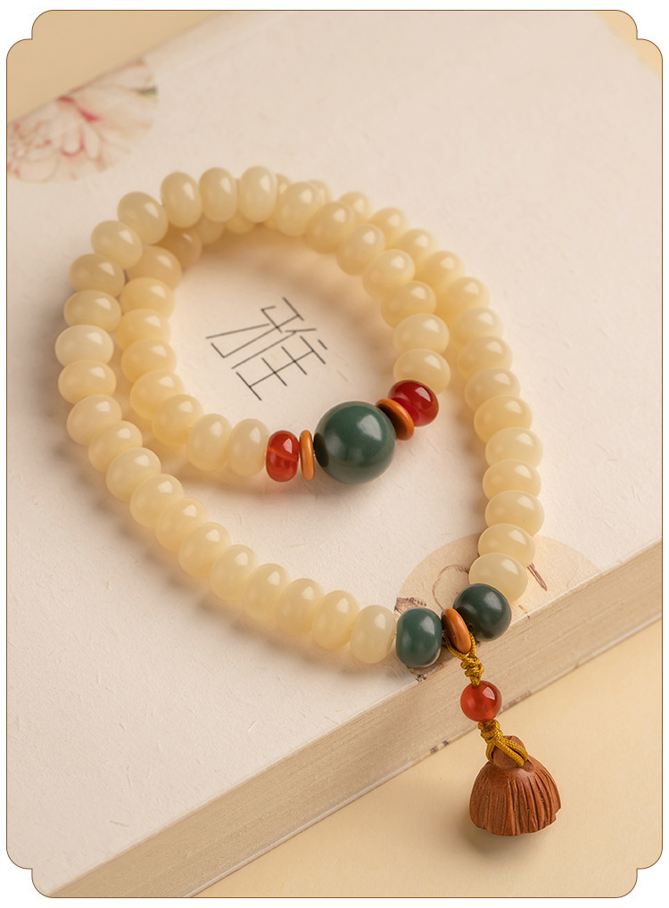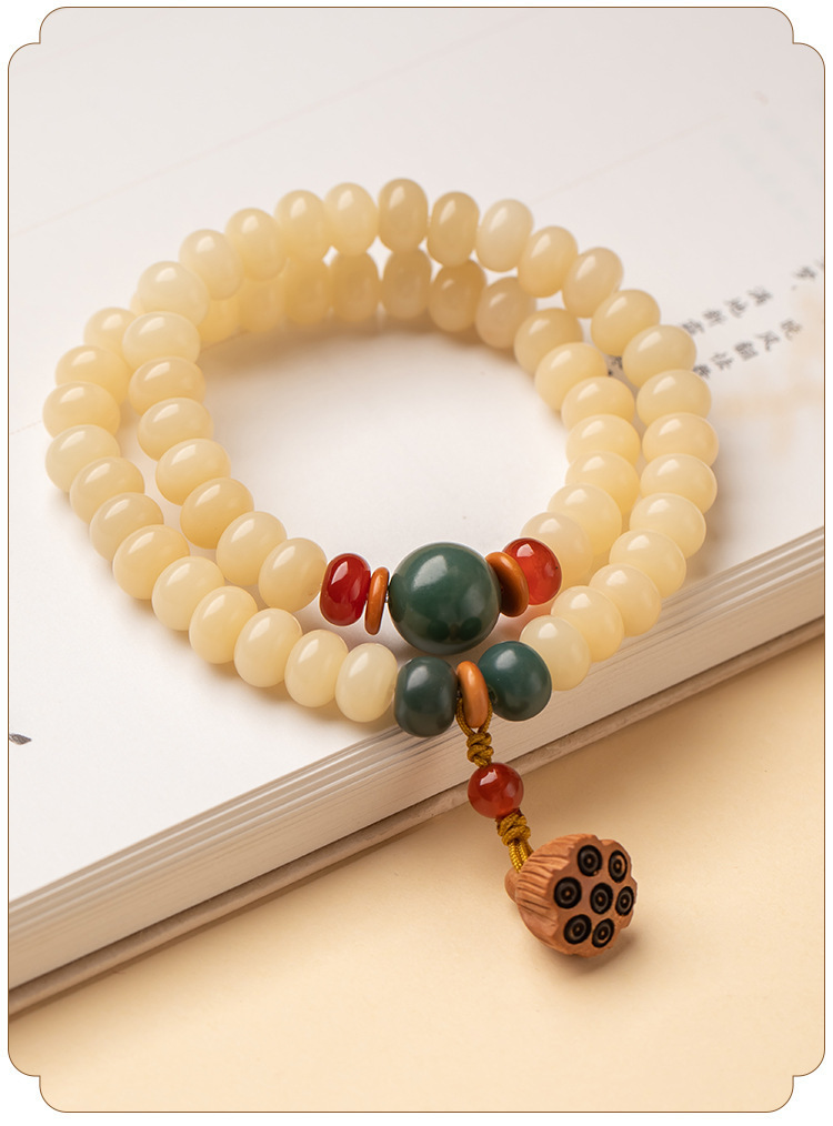 奶油黄玉化菩提根手串男女款手链佛珠文玩菩提算盘珠双圈文玩莲蓬