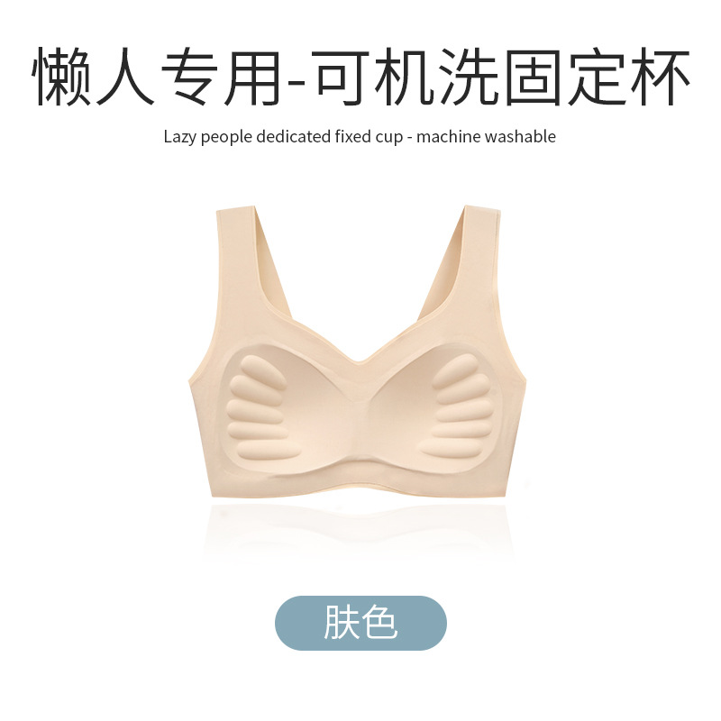 一体式固定杯无痕内衣女小胸聚拢一片式调整型背心式无钢圈文胸罩