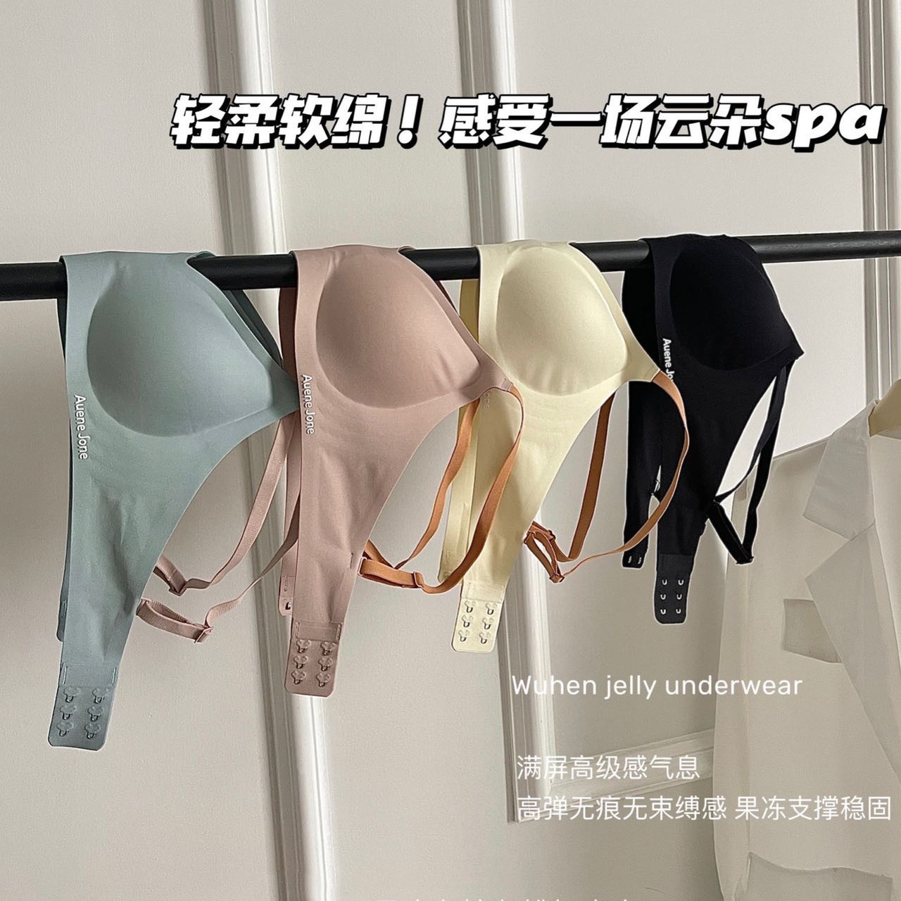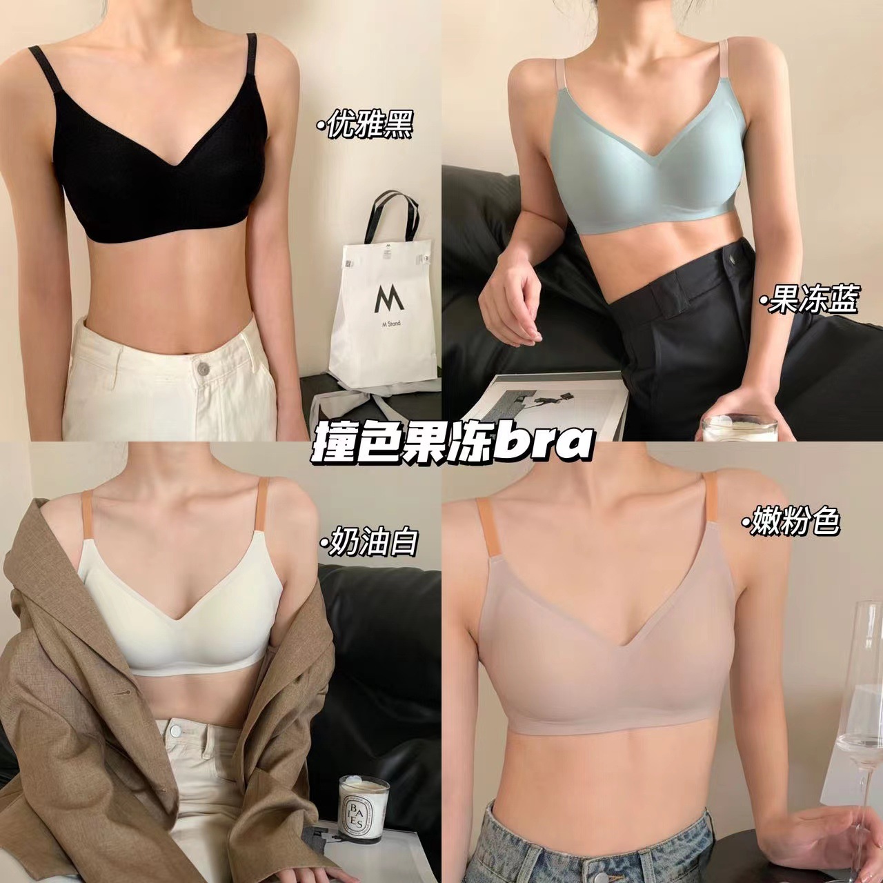 果冻条无痕乳胶内衣女小胸聚拢无钢圈收副乳舒适运动美背文胸罩薄
