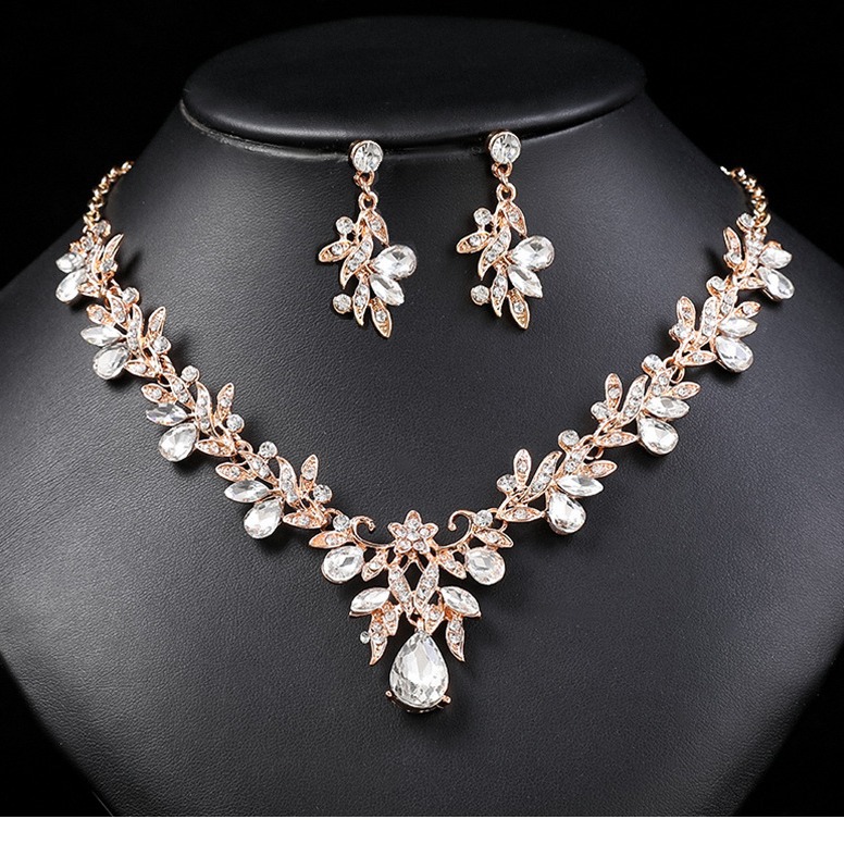 欧美热销跨境货源新娘项链套装高档水晶镶钻婚纱宴会礼服饰品搭配