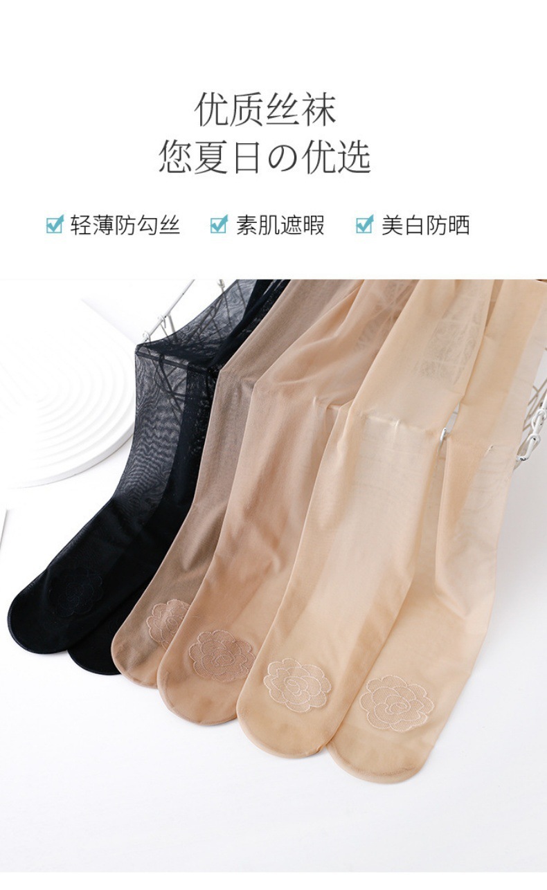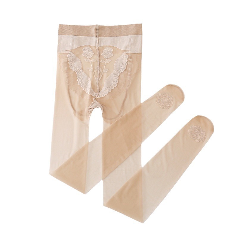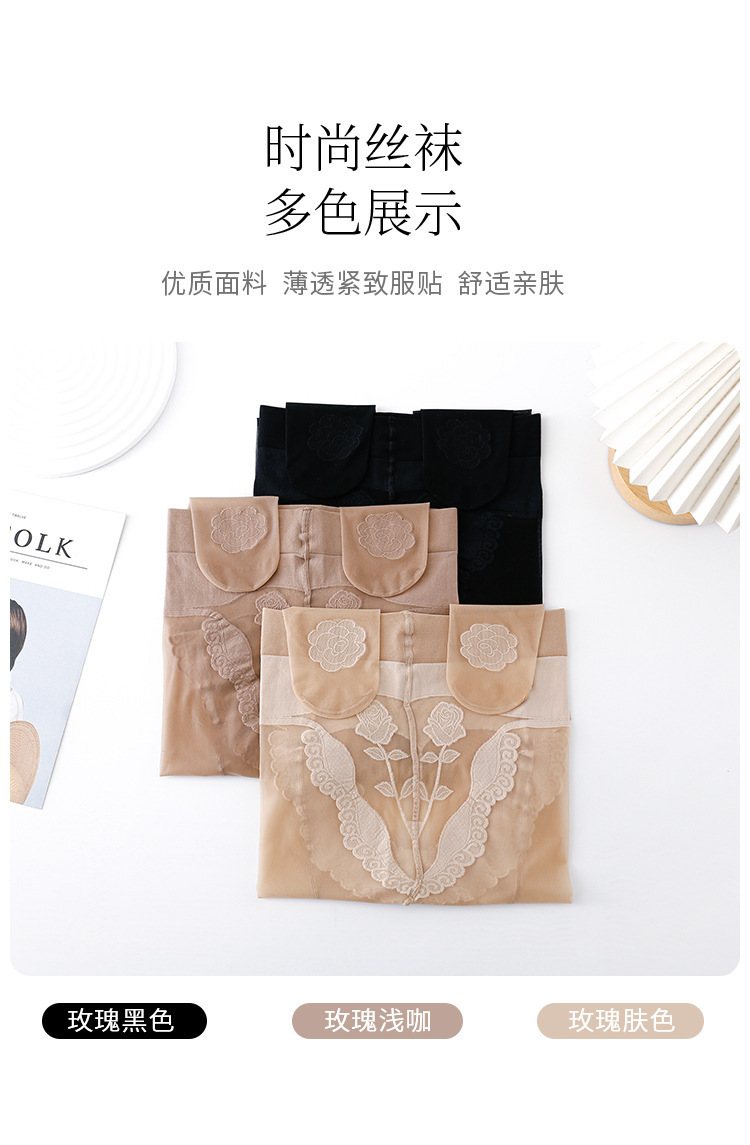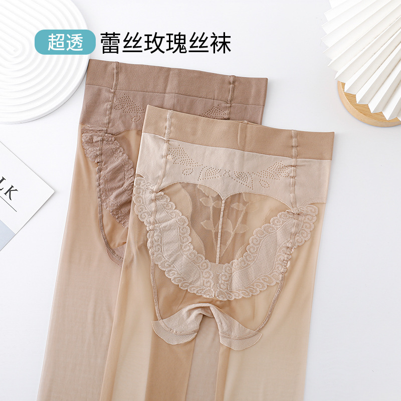 高档玫瑰丝袜女爱心臀超薄透气0D透明隐形性感花边肉色无痕袜批发