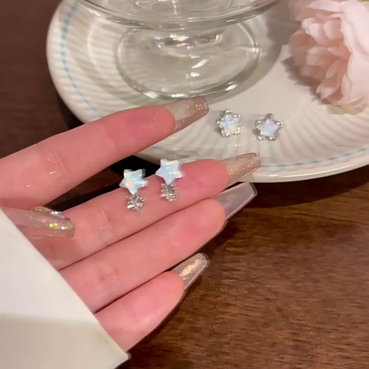 S925轻奢小众高级感星星耳环银针小清新渐变梦幻蓝色五角星耳钉女
