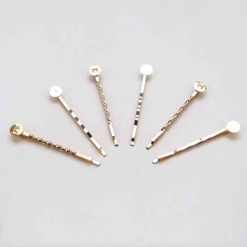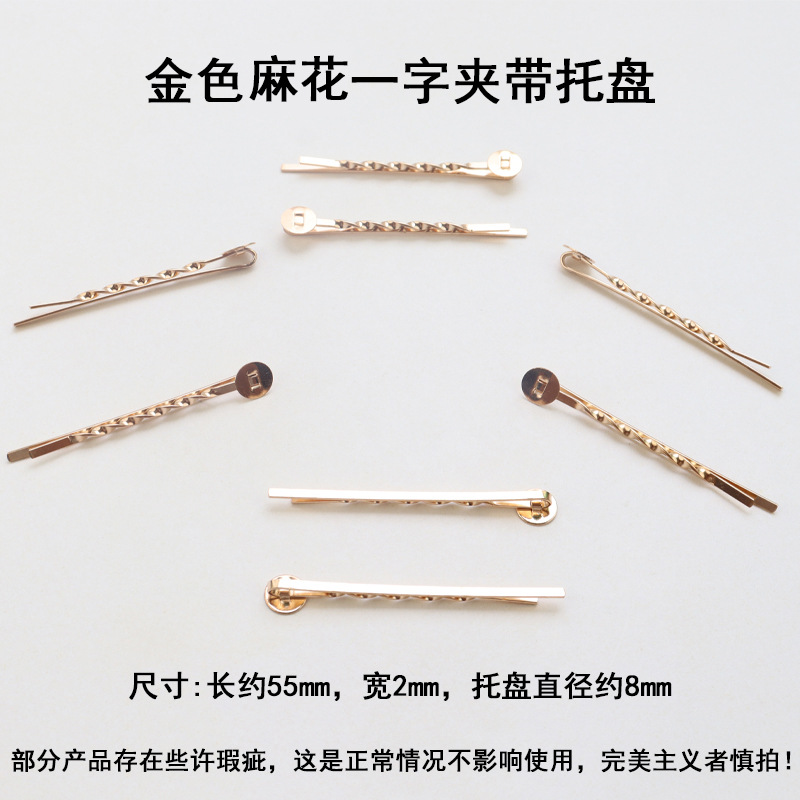 日系金属一字波浪发夹带片粘配件边夹刘海夹手工diy材料现货批发
