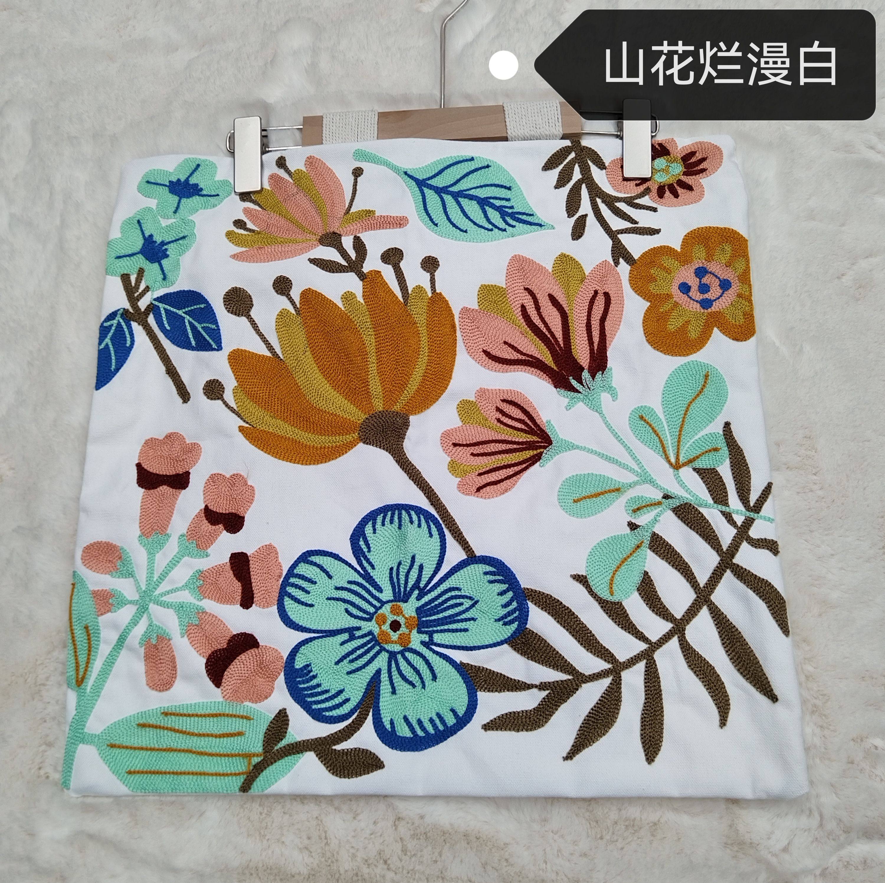 45.45 美式田园毛巾绣抱枕套两个 棉靠枕套 多款不带芯