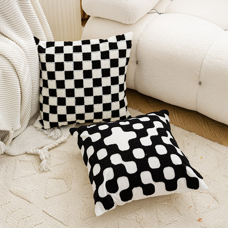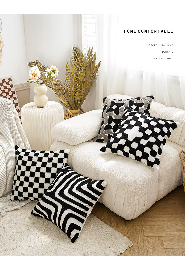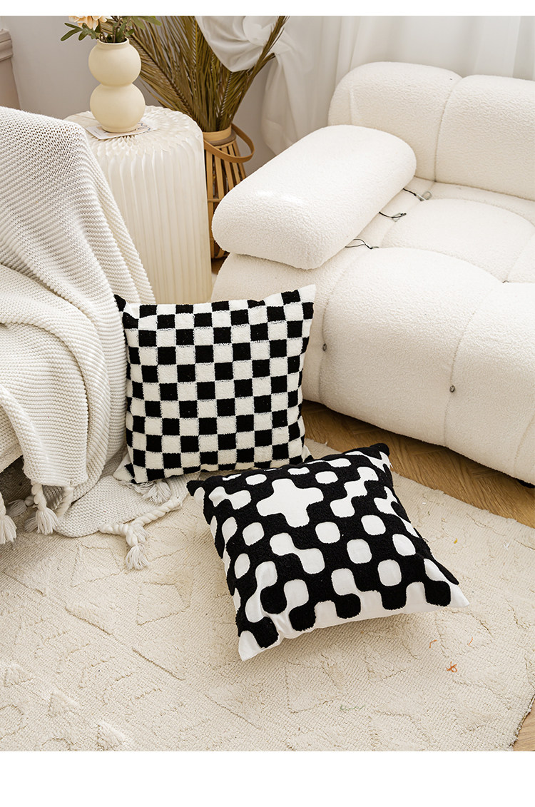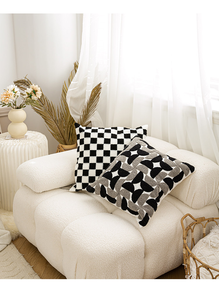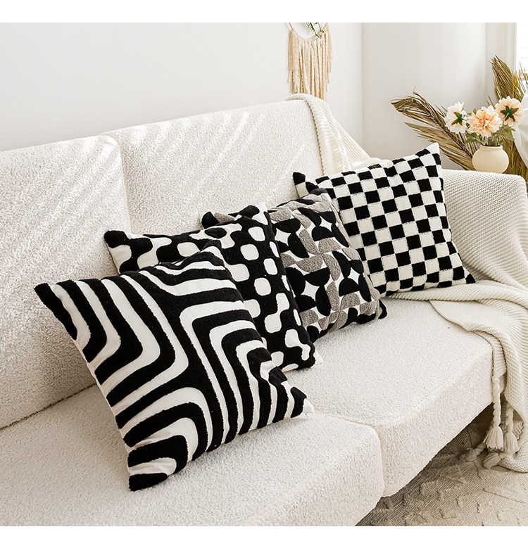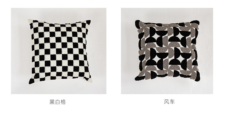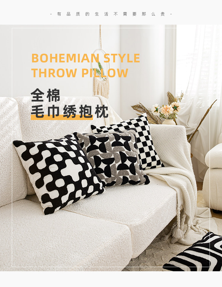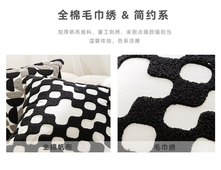 抱枕套沙发靠枕黑白格简约元素毛巾绣花床头靠垫办公室样板间腰枕