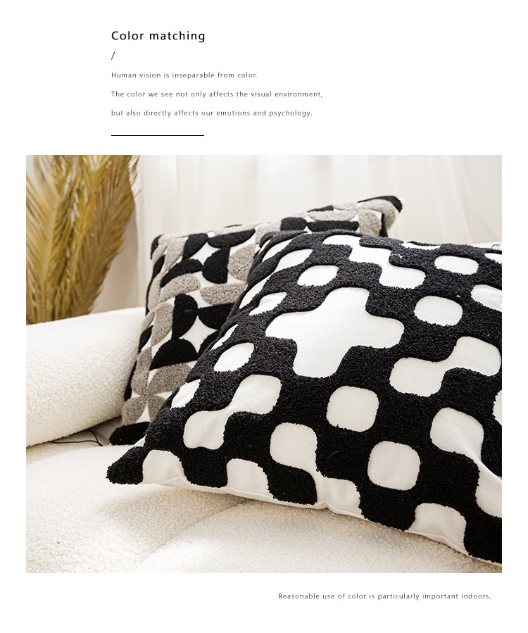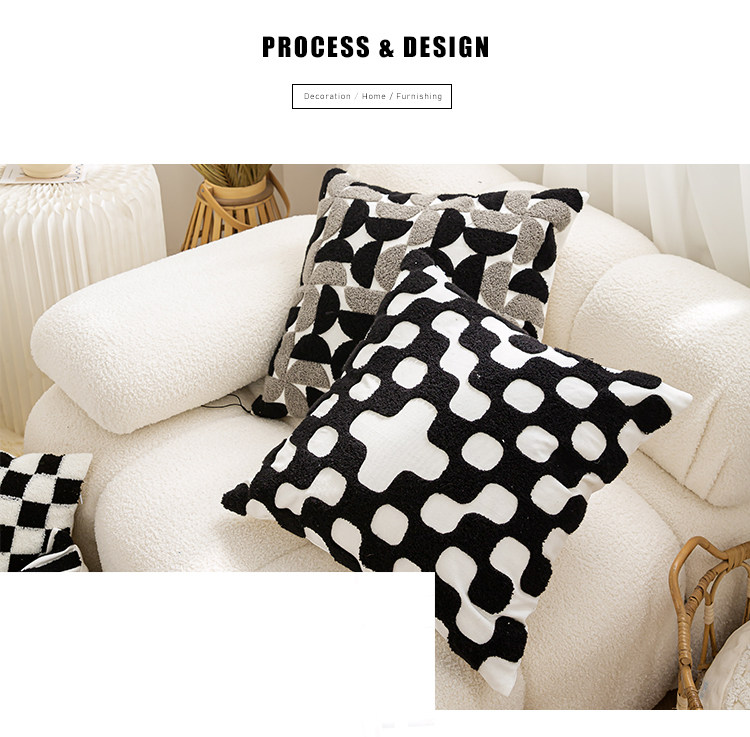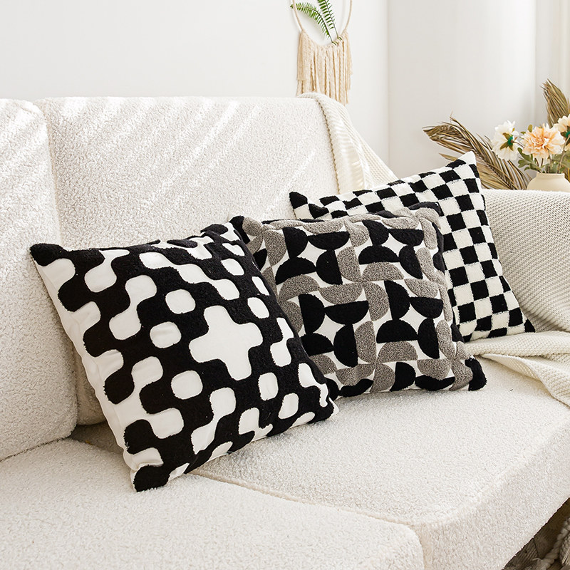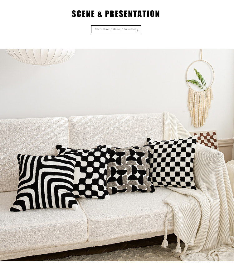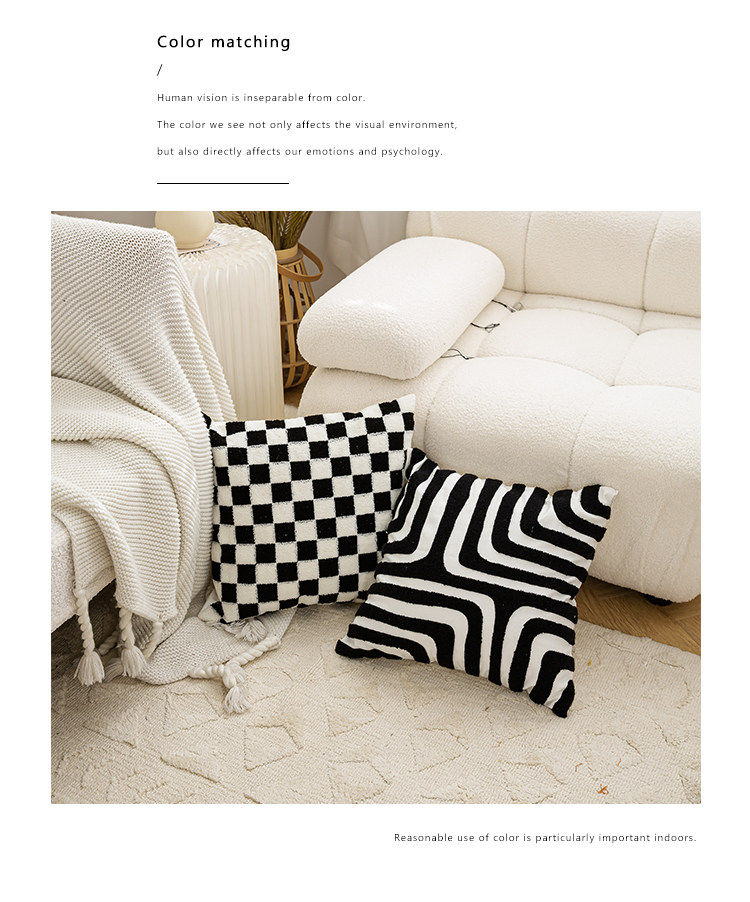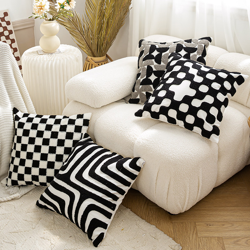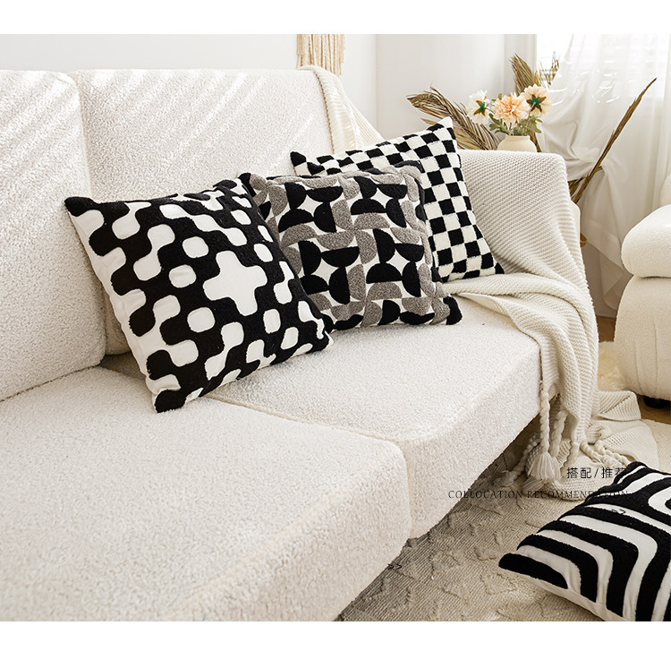 抱枕套沙发靠枕黑白格简约元素毛巾绣花床头靠垫办公室样板间腰枕
