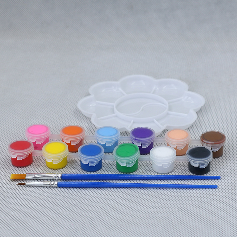 高浓度搪胶娃娃涂色颜料手工diy涂鸦画笔调色盘12色丙烯石膏颜料