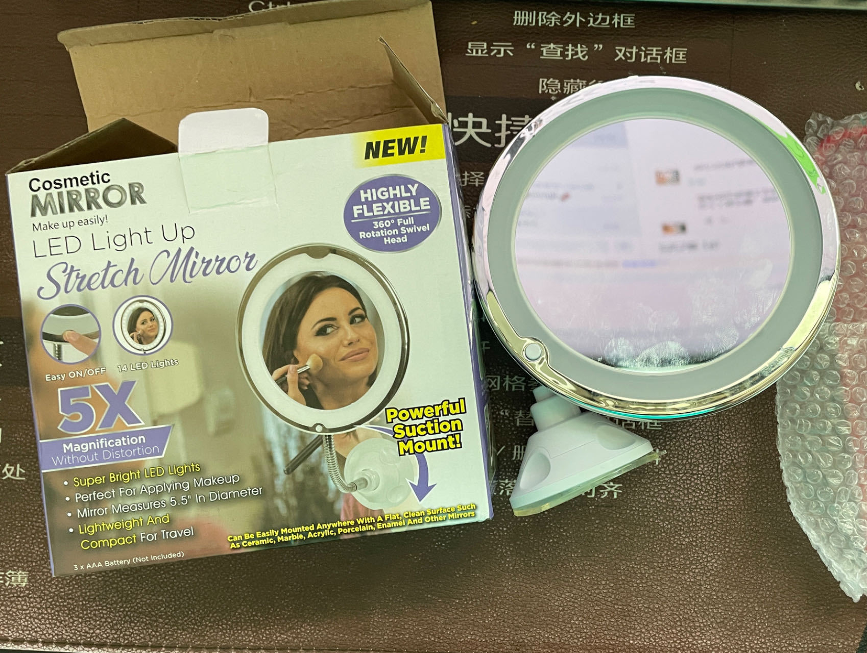 化妆镜带led补光灯10X倍放大干电池吸盘式折叠网红美妆镜跨境新款