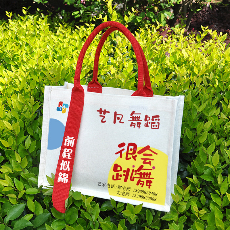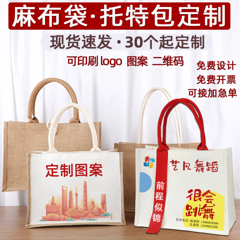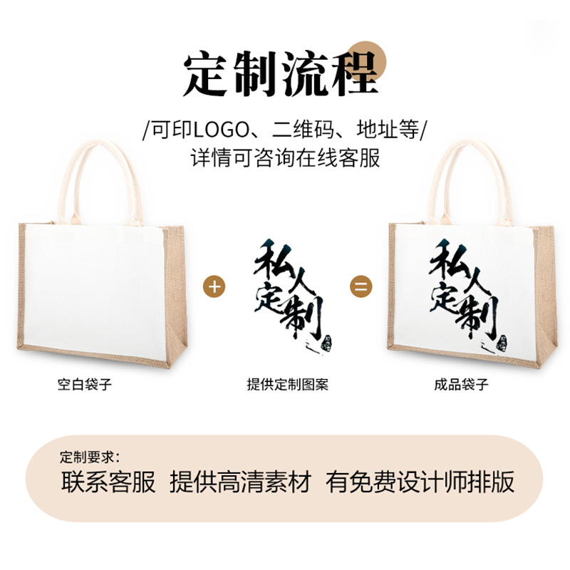 麻布袋黄麻包定制印logo立体托特包手提飘带款环保学生礼品定做
