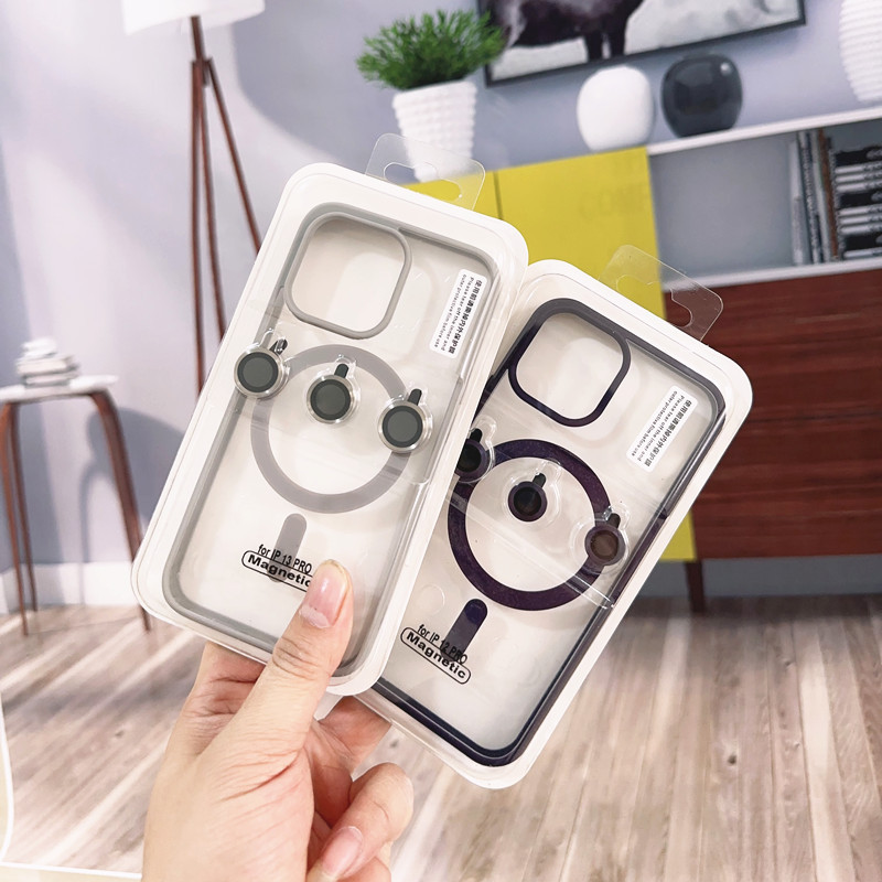 适用苹果15磁吸手机壳iphone14亚克力透明保护套13配带独立镜头膜