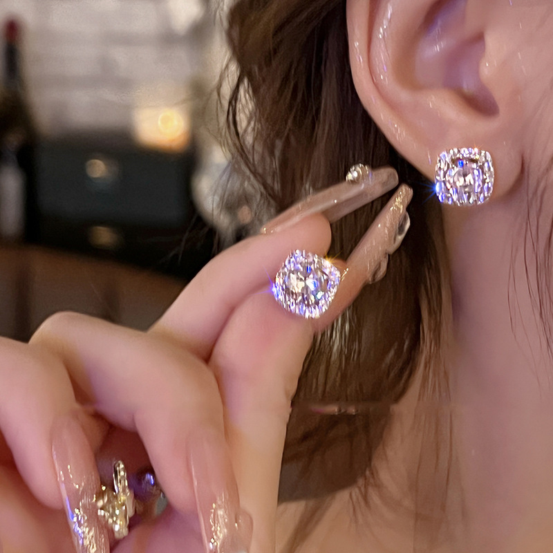 轻奢小众冷淡风几何形耳环百搭气质耳饰S925银针简约超闪锆石耳钉