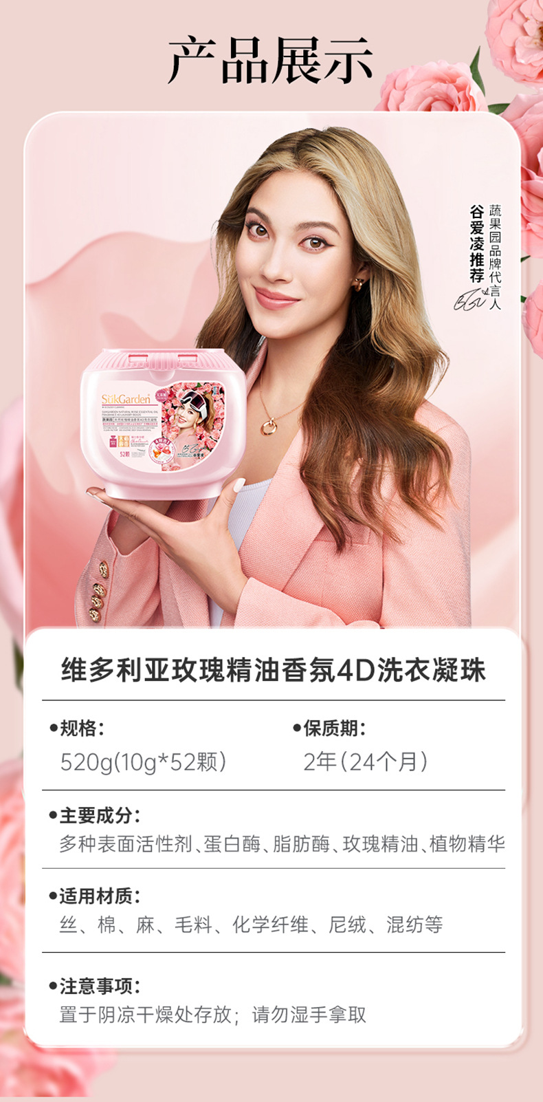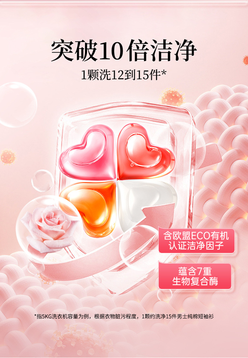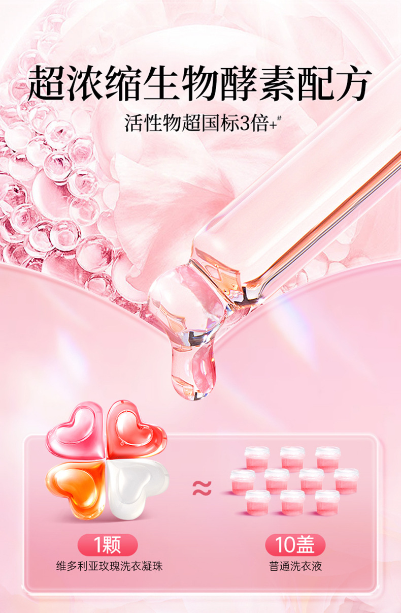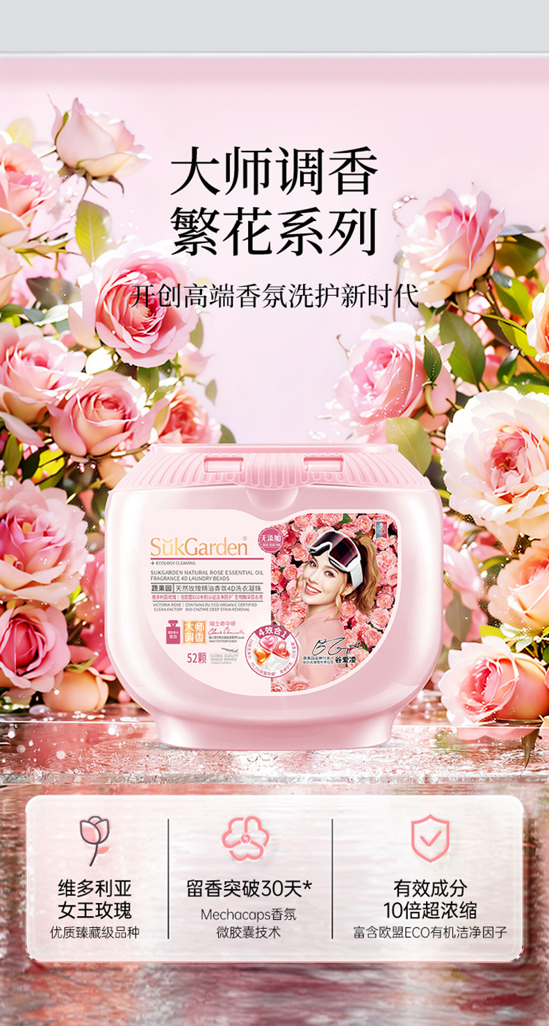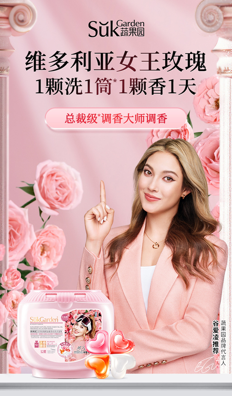蔬果园维多利亚玫瑰精油香氛4D洗衣凝珠10倍洁净除螨30天留香