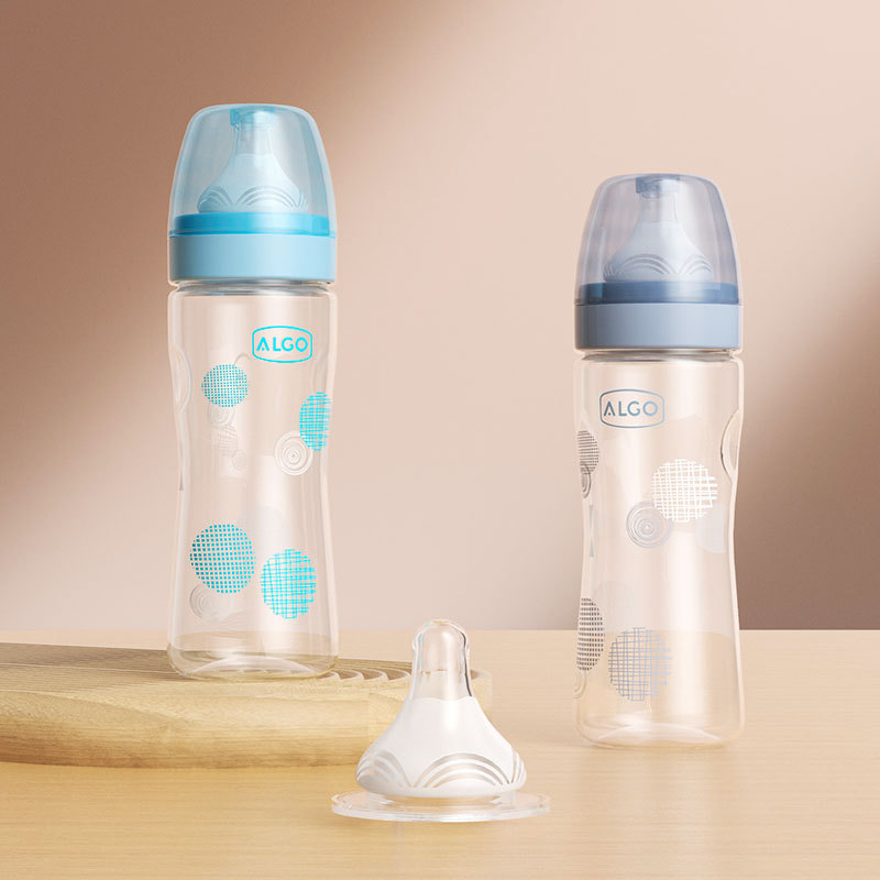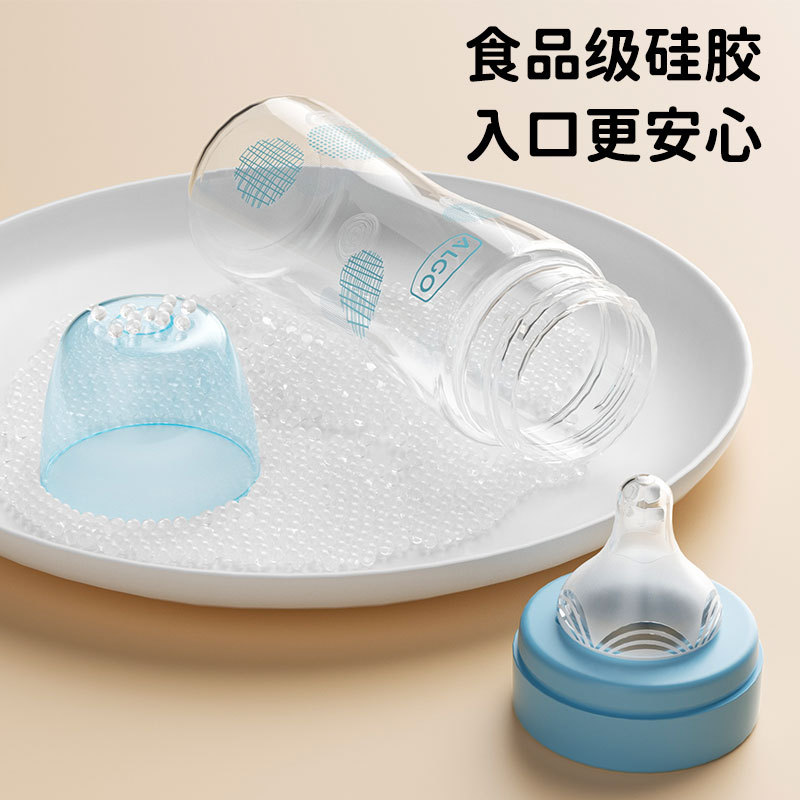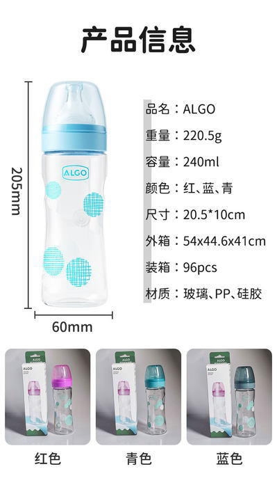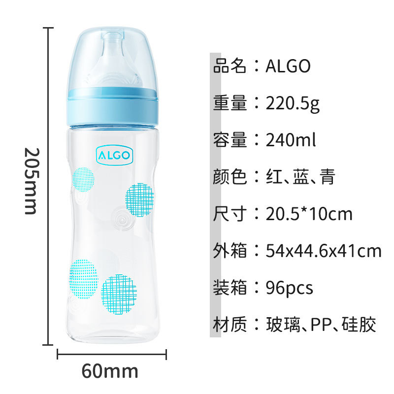 ALGO新生儿玻璃奶瓶彩盒装宽口径耐摔防胀气240ml婴儿玻璃奶瓶