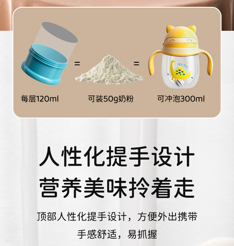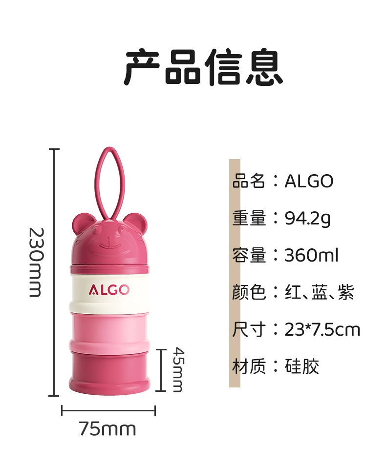 ALGO婴儿奶粉盒便携外出分装辅食盒食品级塑料三层奶粉密封储存罐