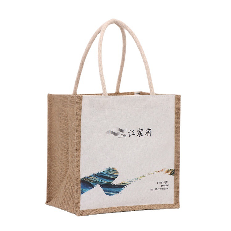 时尚简约购物亚麻袋 彩印广告礼品黄麻袋批发 复古手提黄麻布袋子