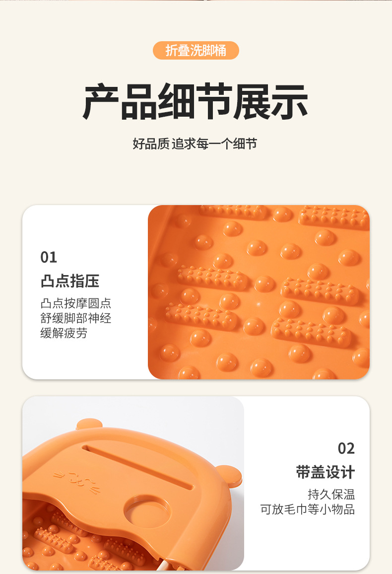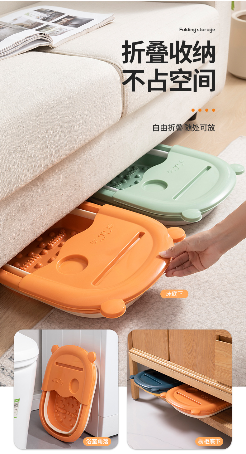 居家可折叠泡脚桶 秋冬泡脚猫咪洗脚桶按摩脚底足浴桶大容量水桶