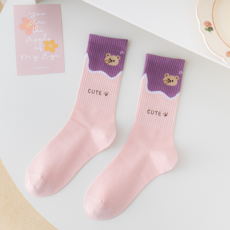 袜子女中筒纯色棉街头可爱清新学院风运动春秋冬款ins潮流长筒袜