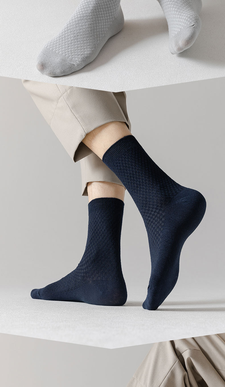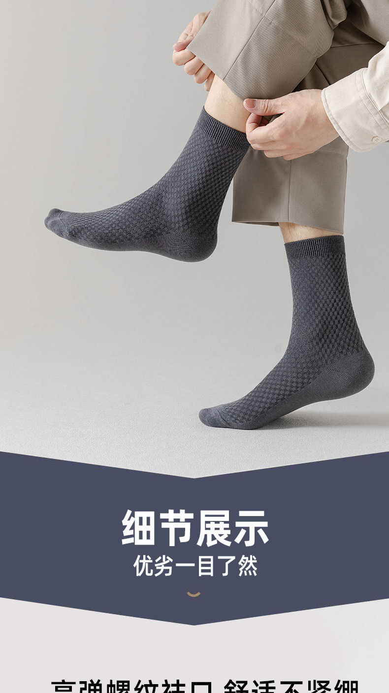 跨境大码竹纤维男士袜吸汗透气中筒袜商务袜四季款短筒男袜 批发