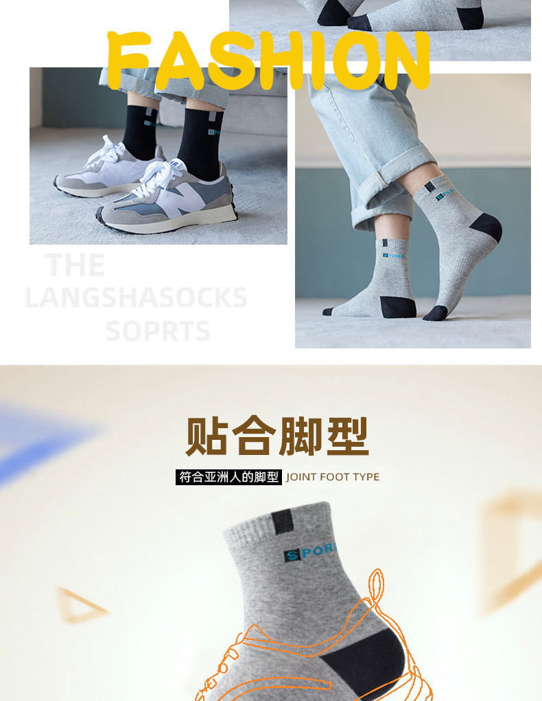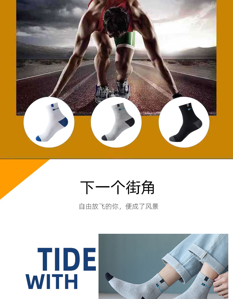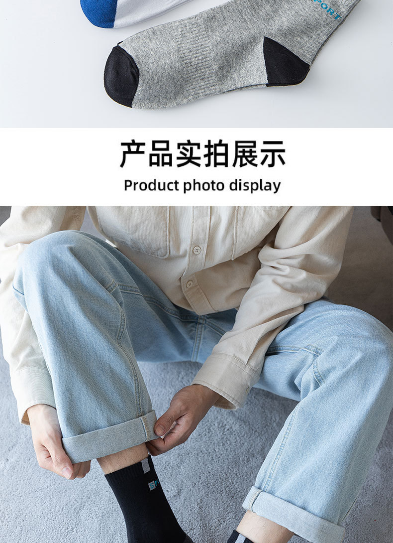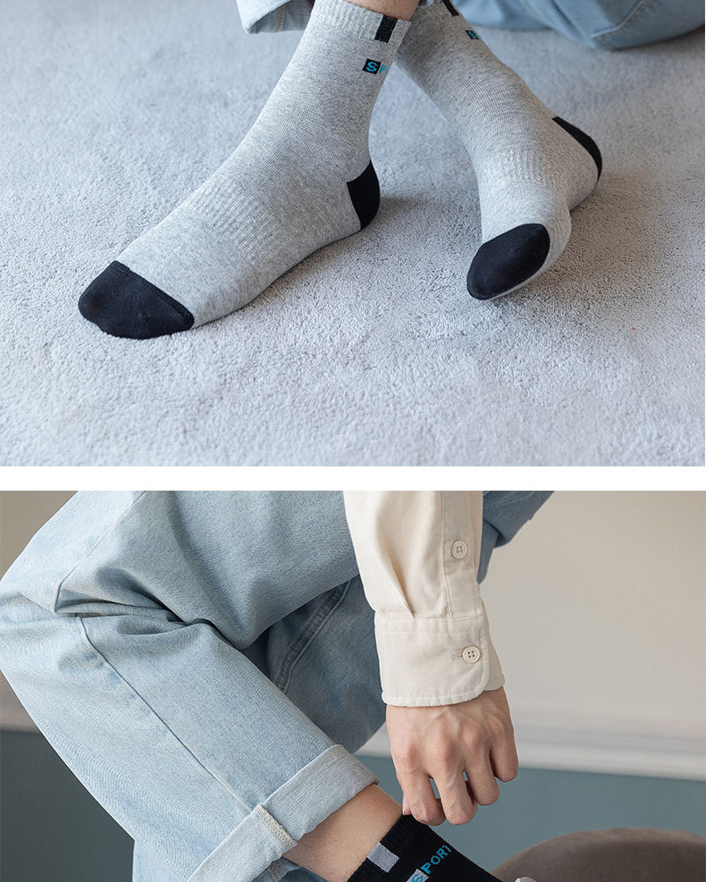 袜子男士中筒袜男士棉袜秋冬款中筒四季透气吸汗运动男袜厂家批发