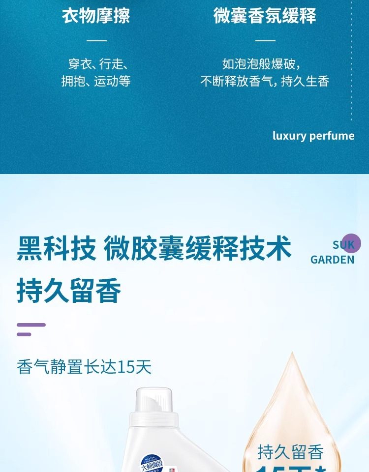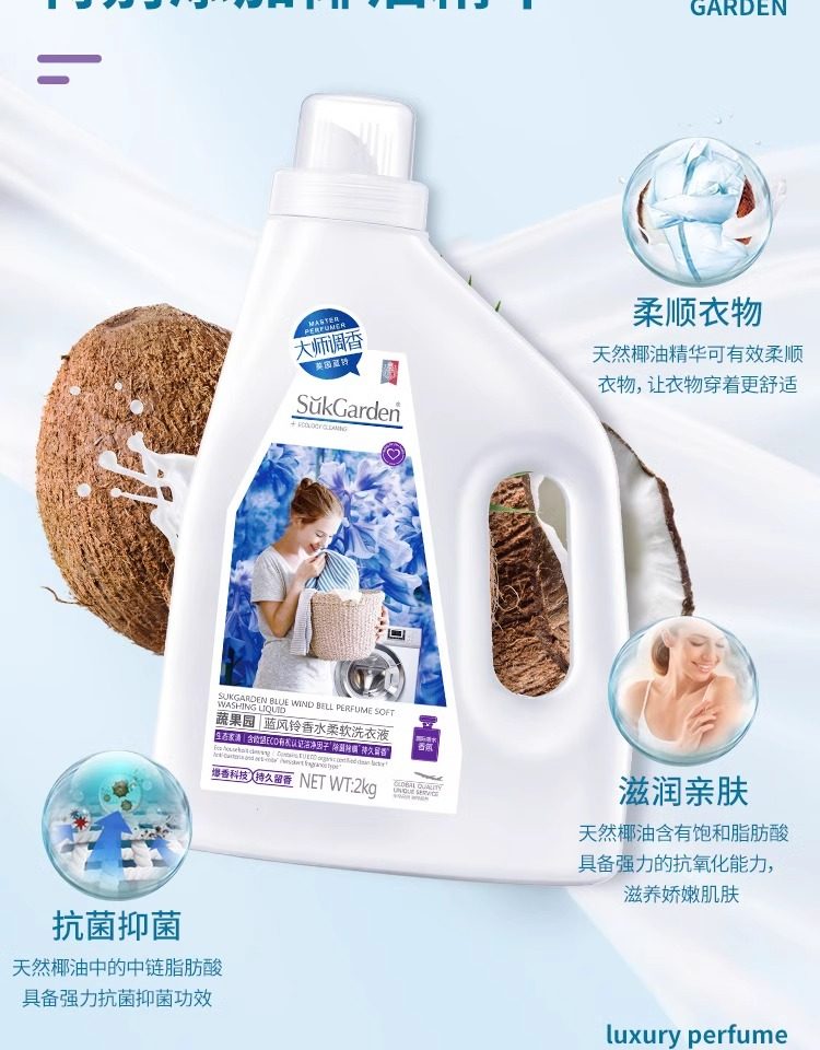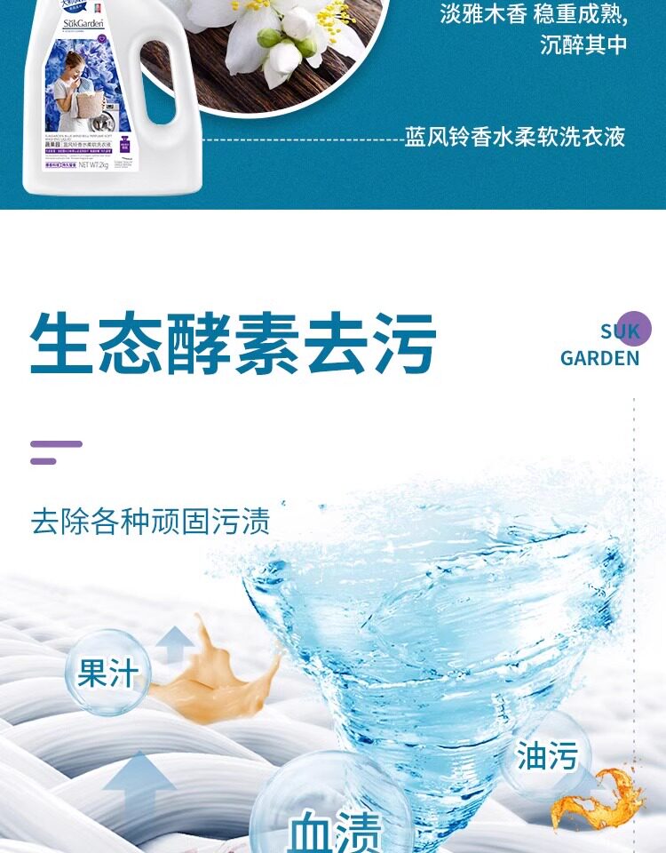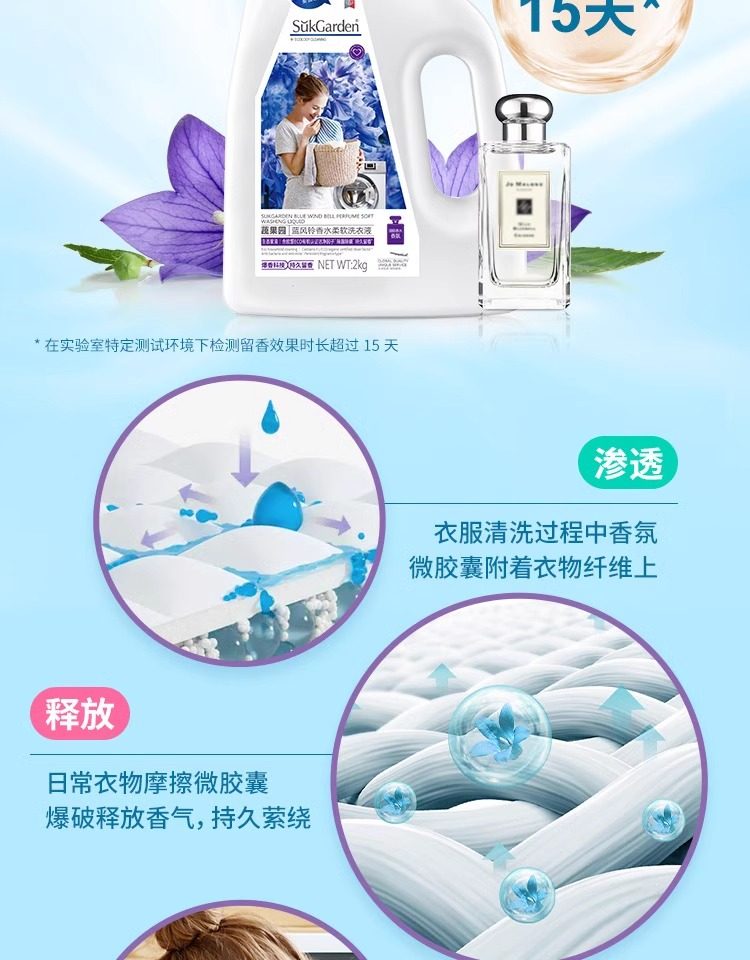 蔬果园蓝风铃香水柔软洗衣液 持久留香深层清洁 大师调香洗衣液