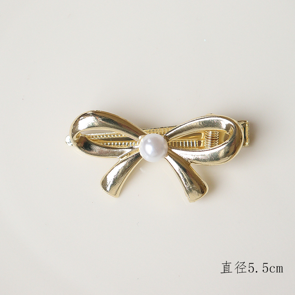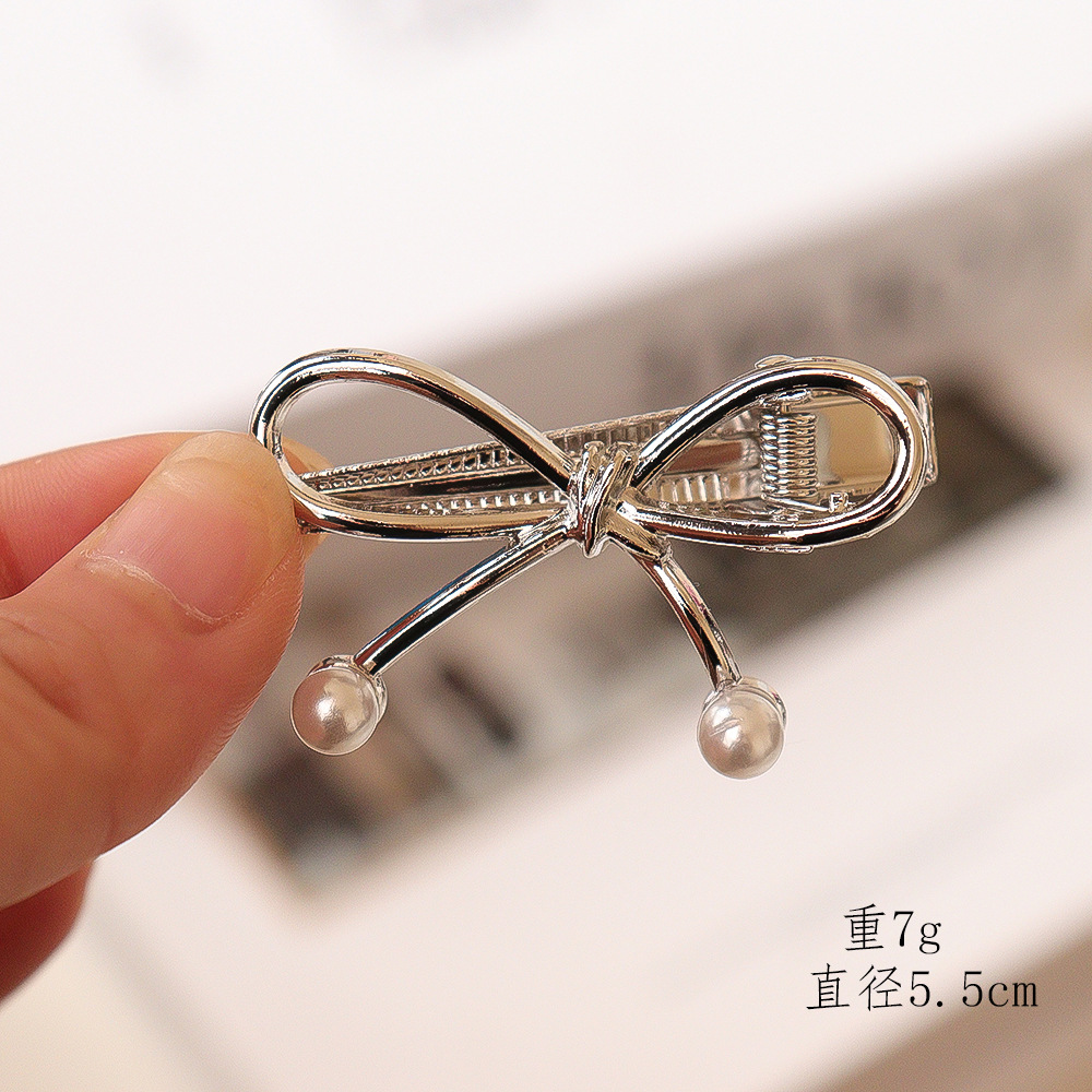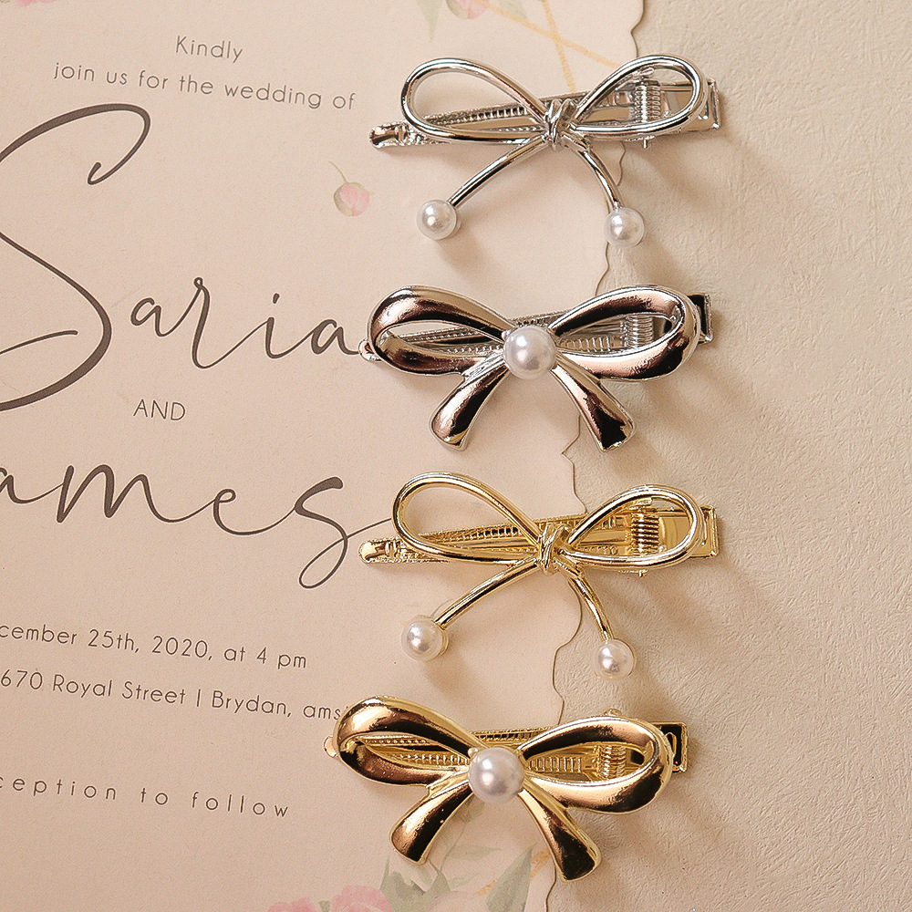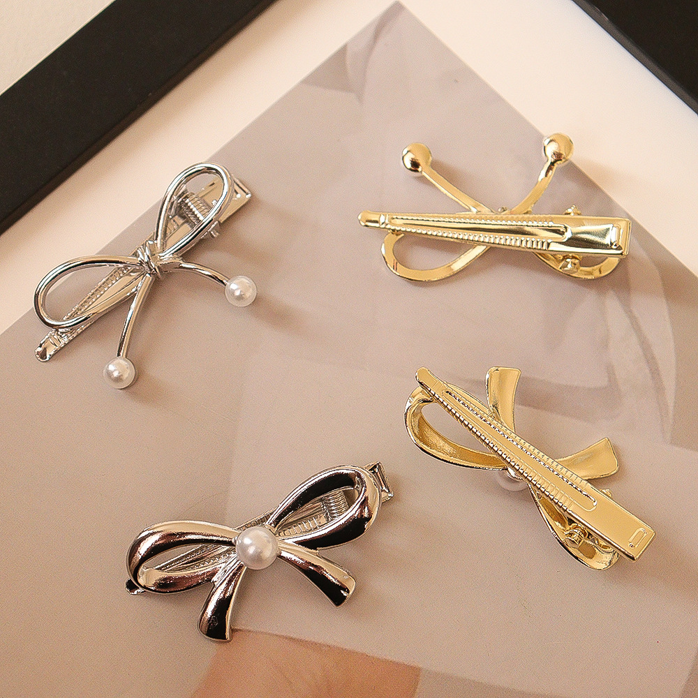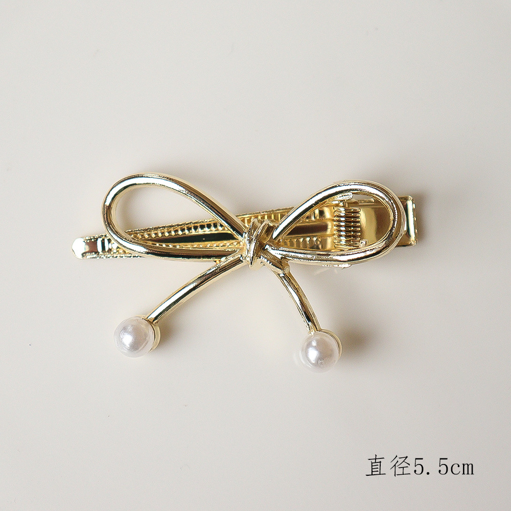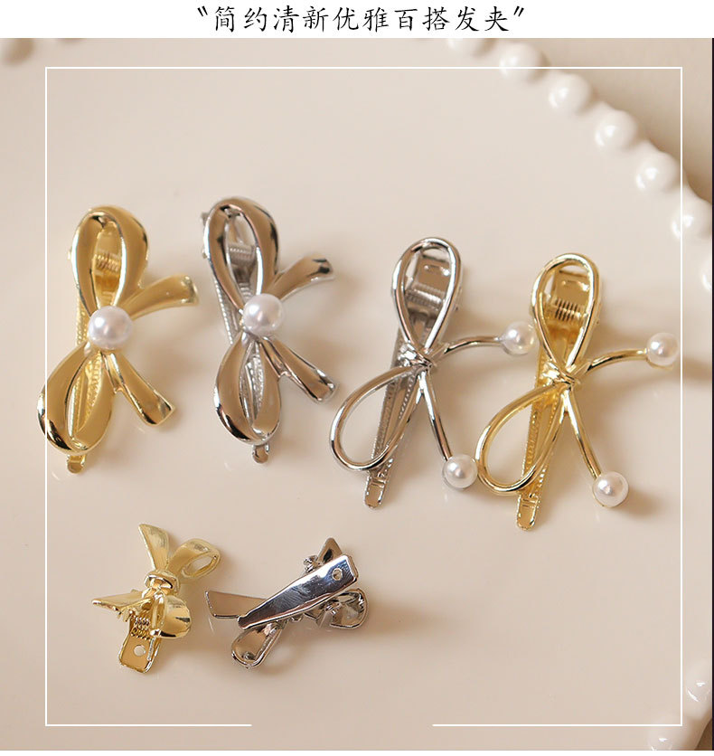 跨境韩版金属珍珠蝴蝶结发夹女碎发刘海夹鸭嘴夹子义乌头饰工厂