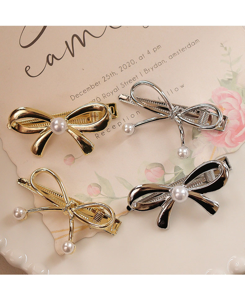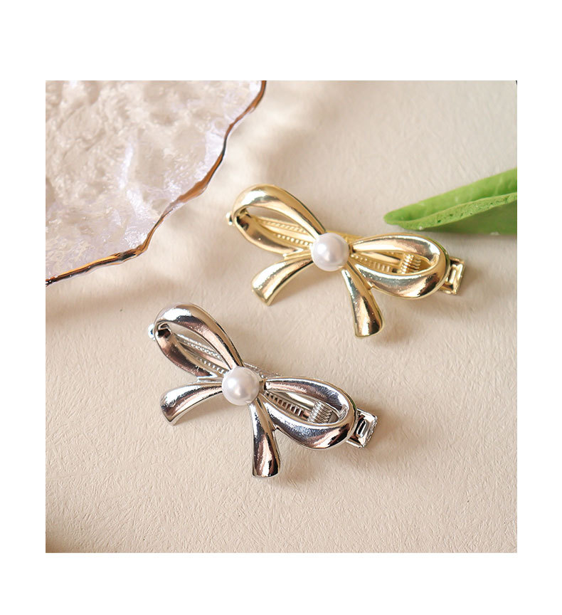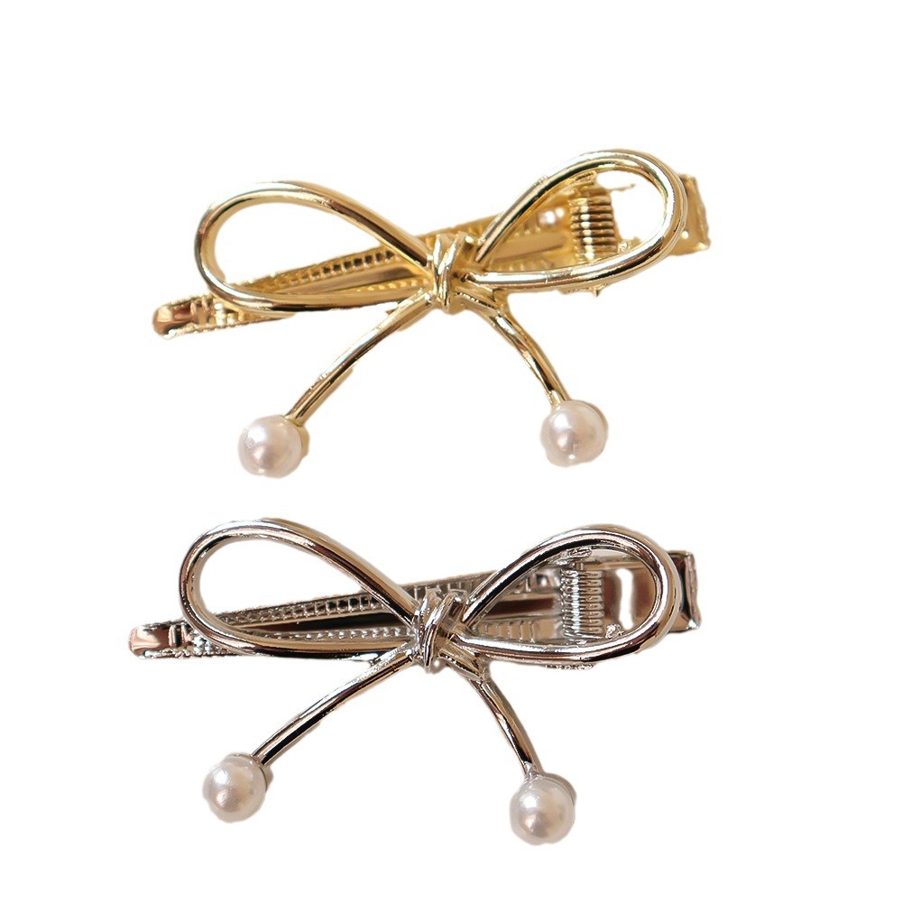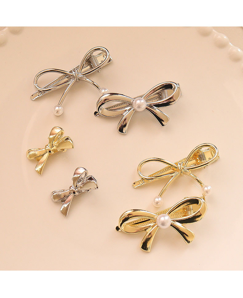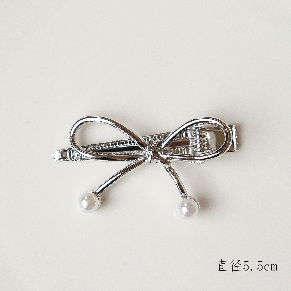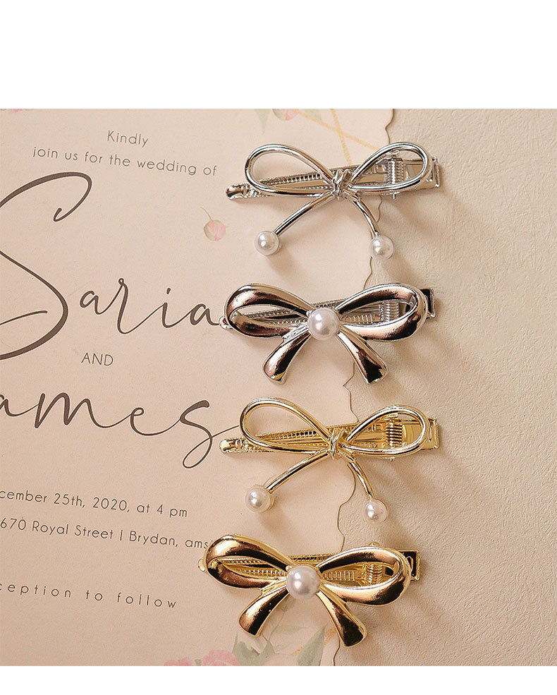 跨境韩版金属珍珠蝴蝶结发夹女碎发刘海夹鸭嘴夹子义乌头饰工厂
