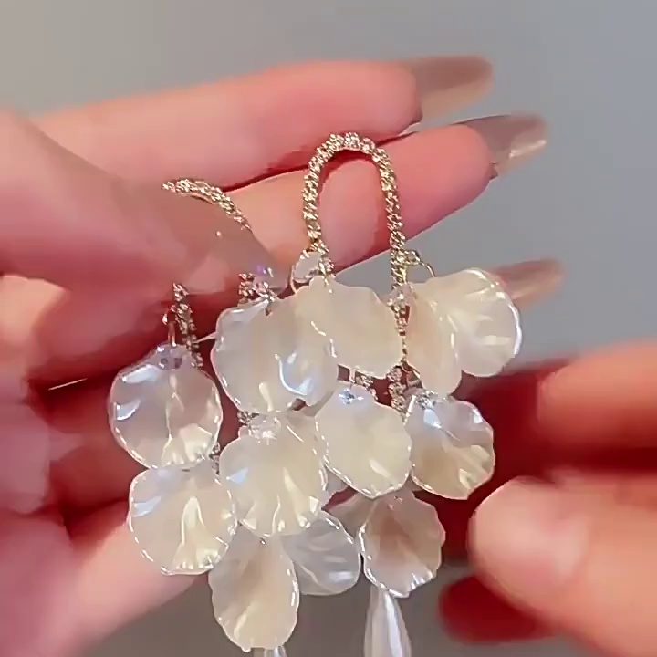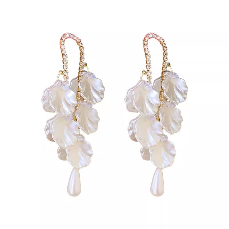 S92百搭气质高级感珍珠耳钉5银针轻奢小众贝壳珍珠长款流苏耳环女
