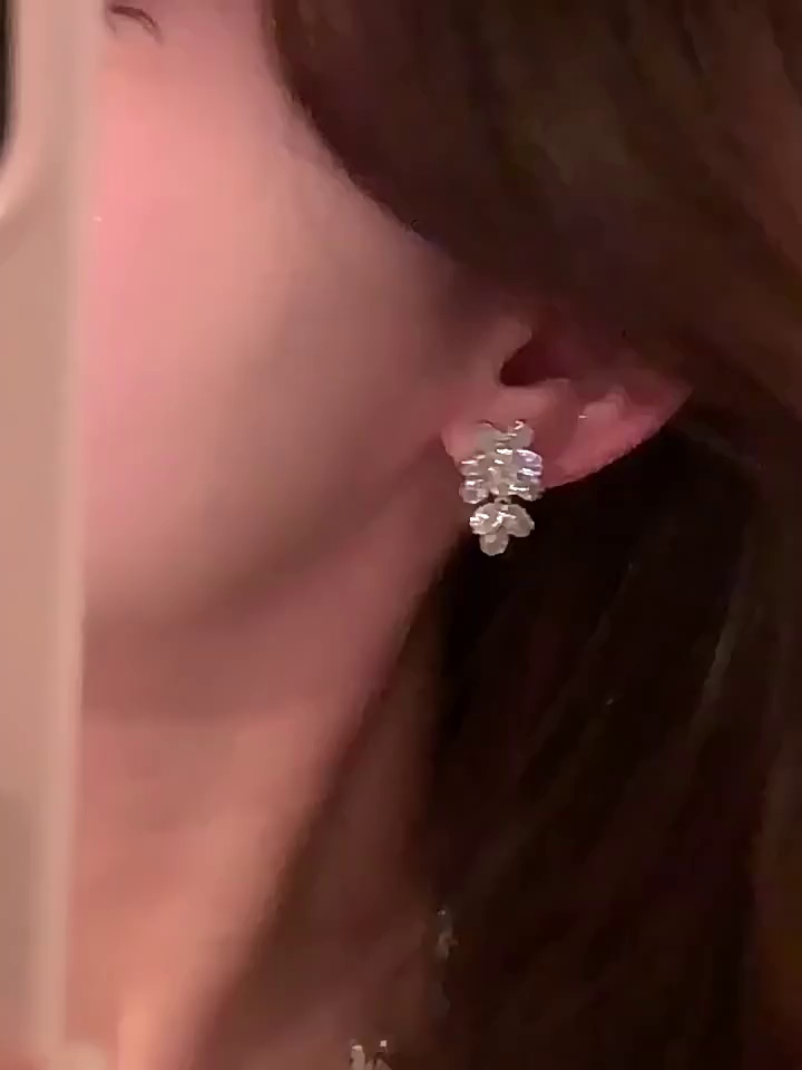 轻奢小众高级感耳钉网红耳饰S925银针百搭气质名媛锆石花朵耳钉女