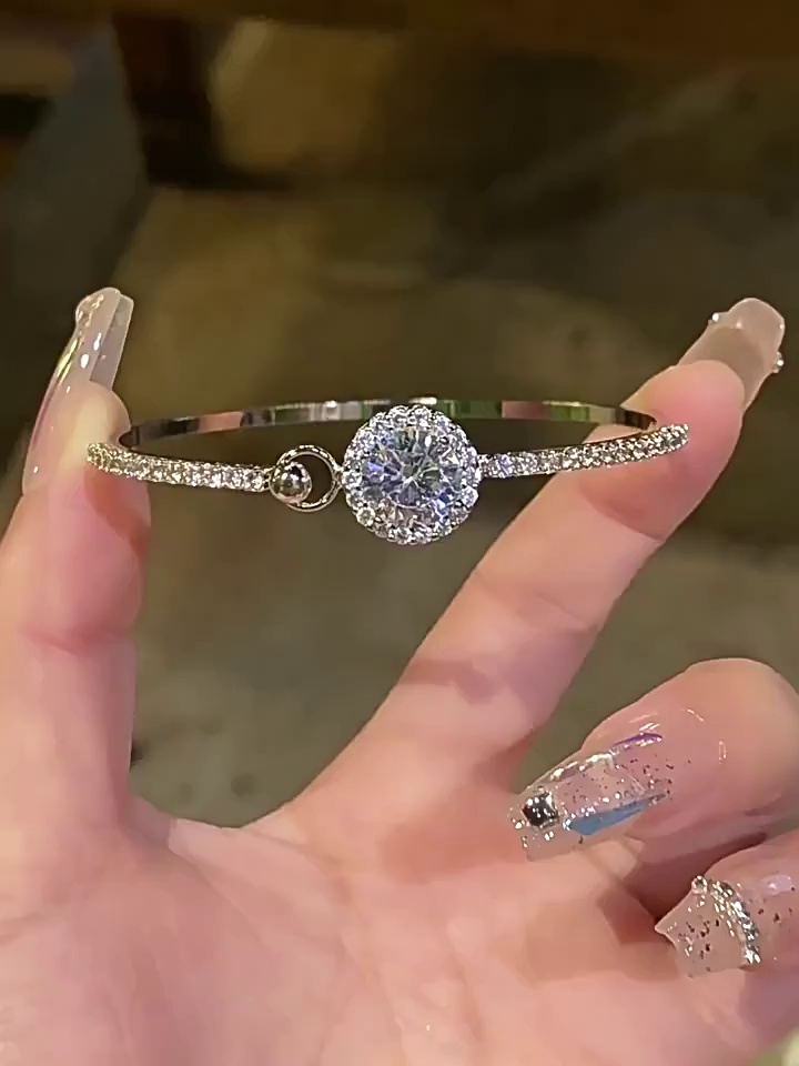 饰品简约百搭气质素圈闺蜜礼物手链手饰爆款超闪圆形锆石手镯批发