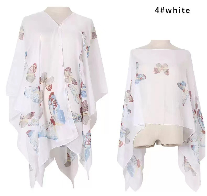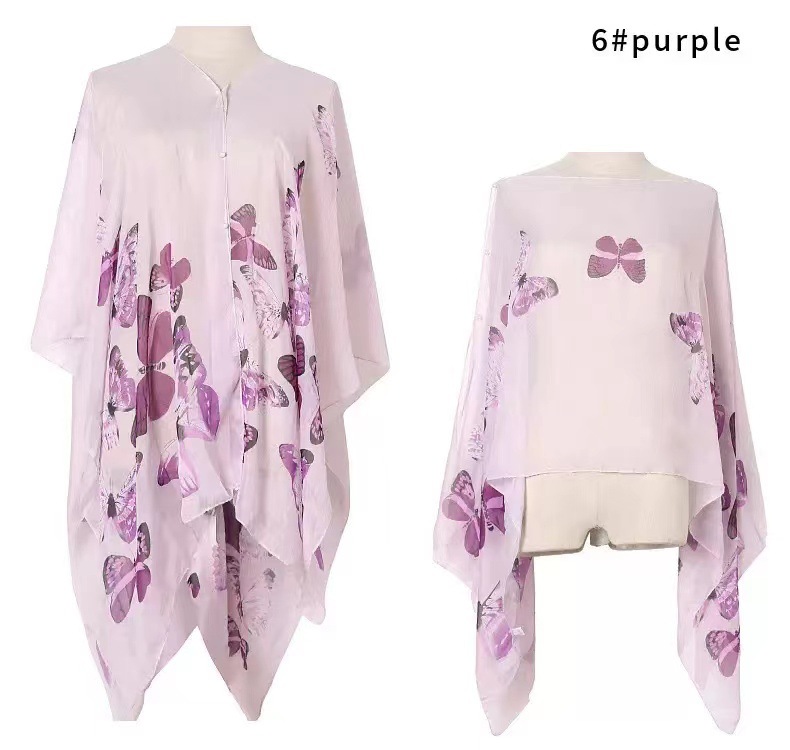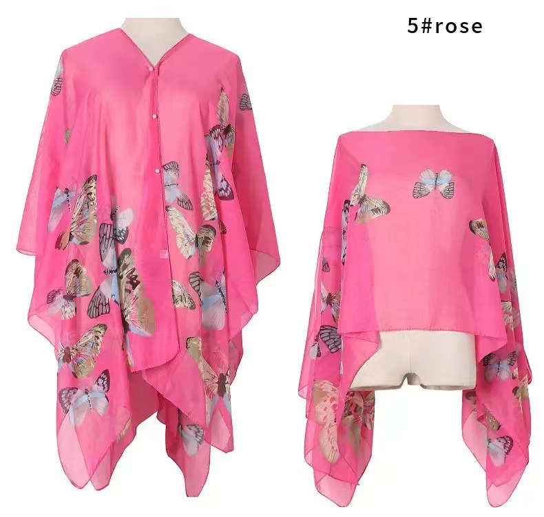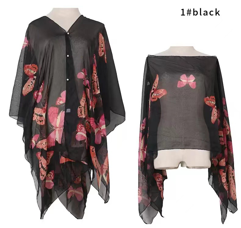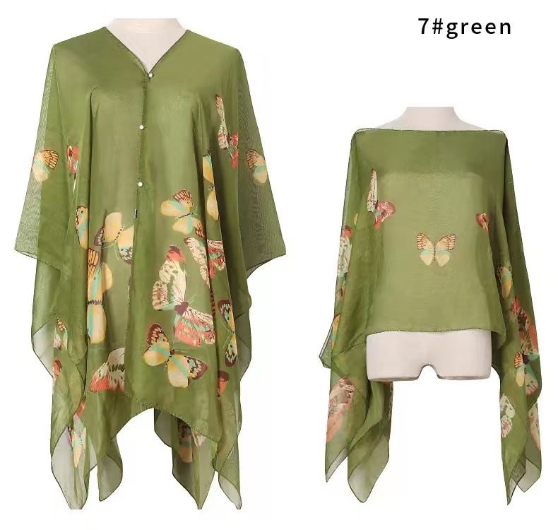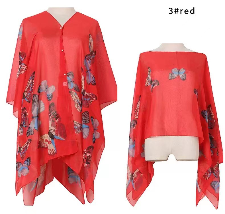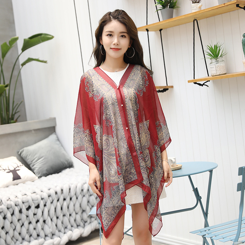 防晒披肩骑车沙滩多用百变丝巾雪纺印花防紫外线腰果花订珍珠披肩