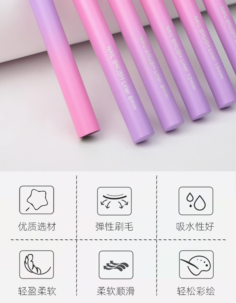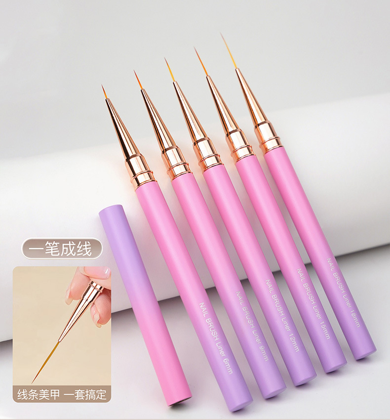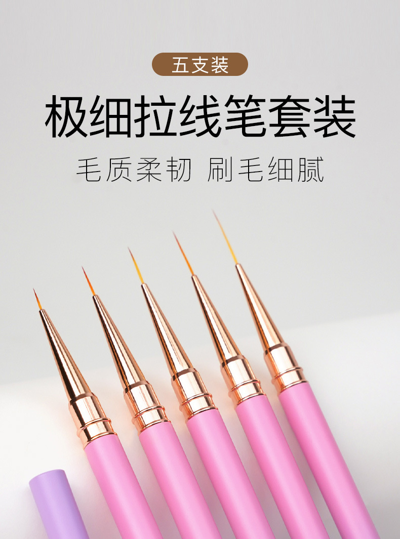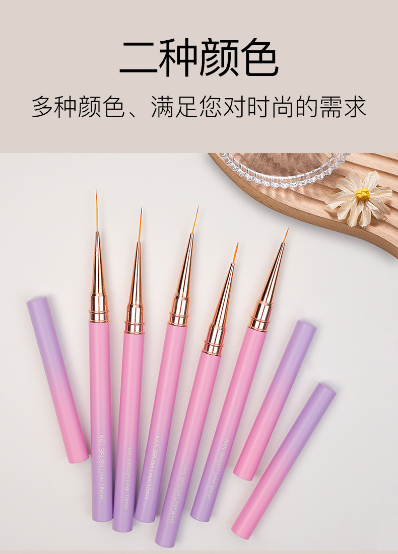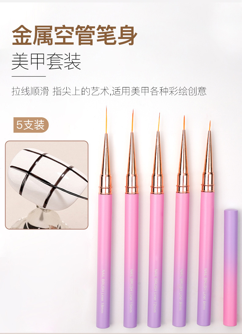 371渐变粉紫圆杆针管拉线笔5支装极细勾线笔金属杆勾边画花超细笔
