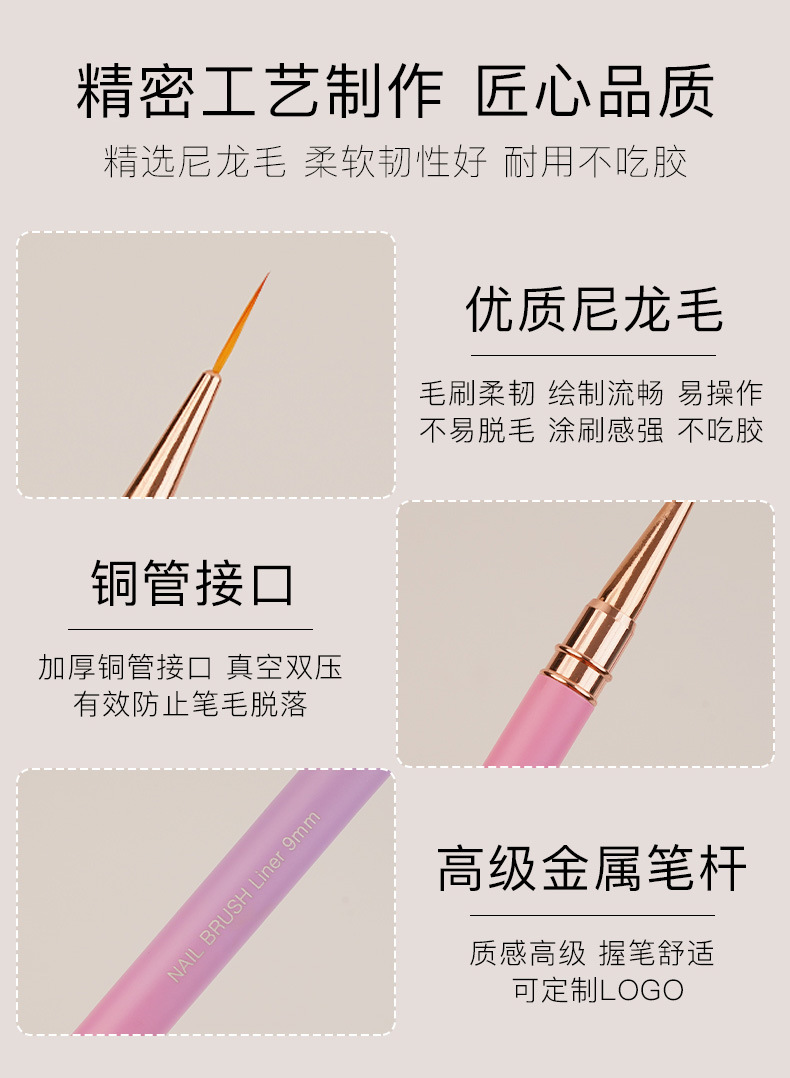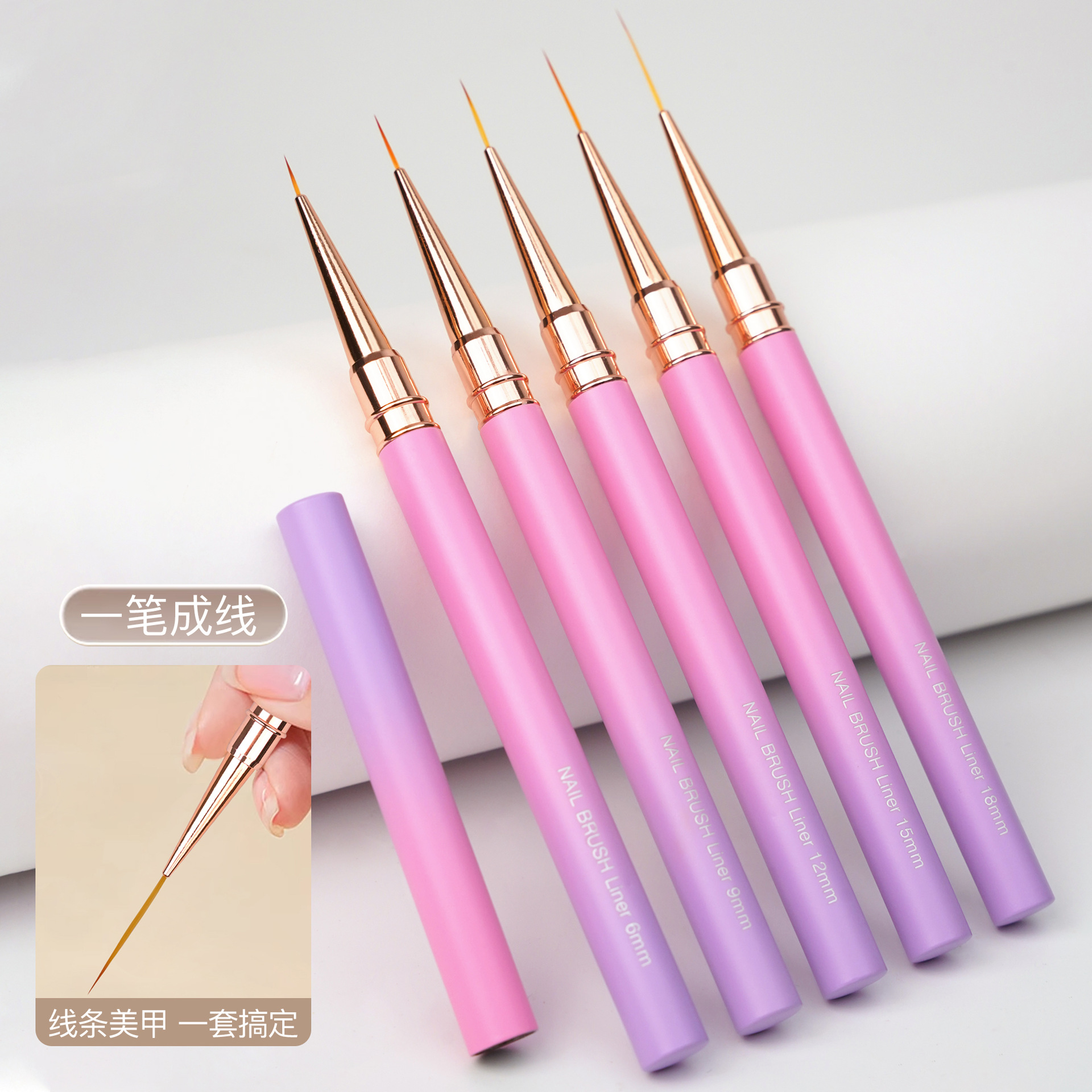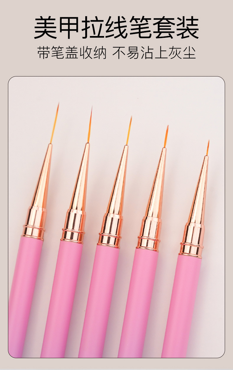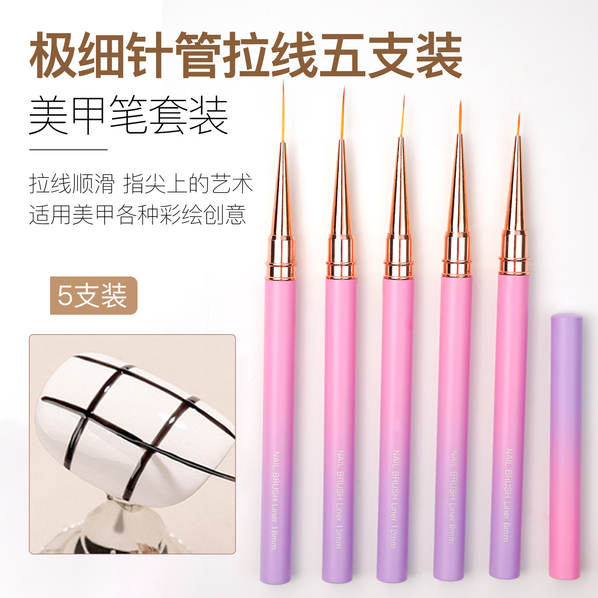 371渐变粉紫圆杆针管拉线笔5支装极细勾线笔金属杆勾边画花超细笔