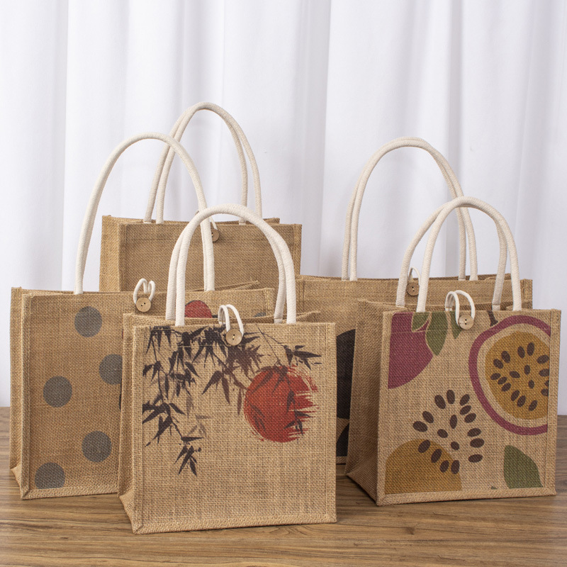 定 制黄麻袋棉麻手提袋可加logo图案麻布亚麻布袋定 制麻布包