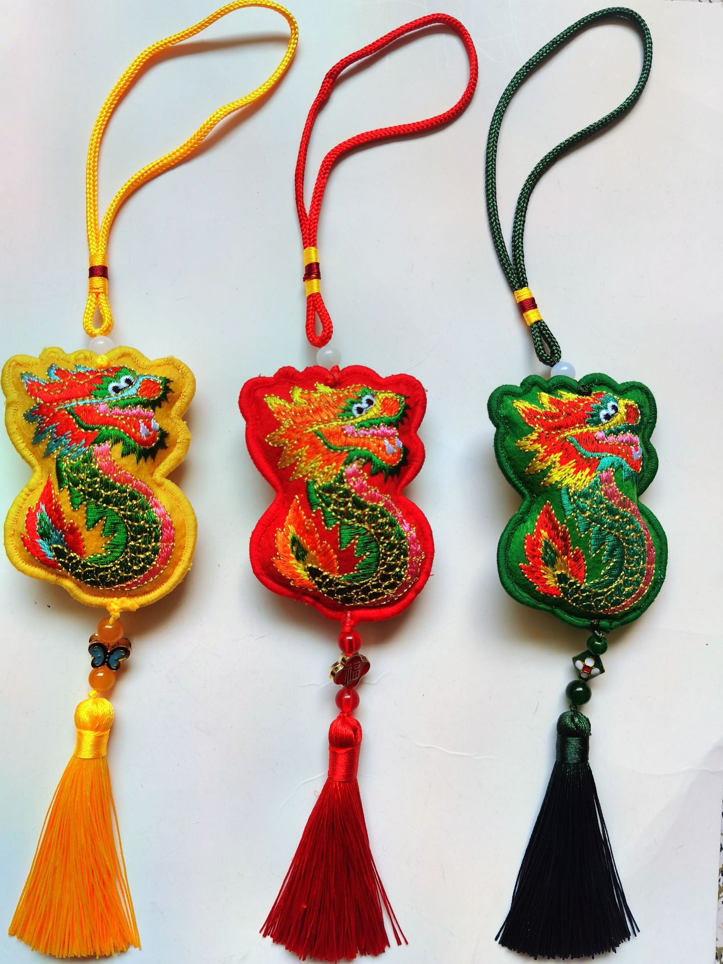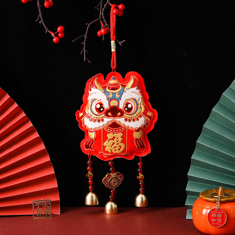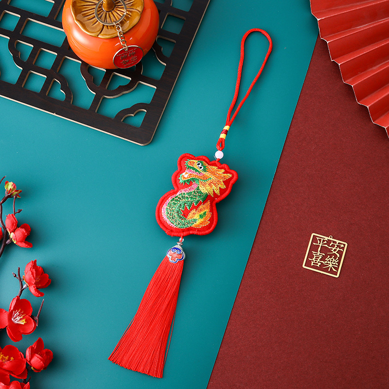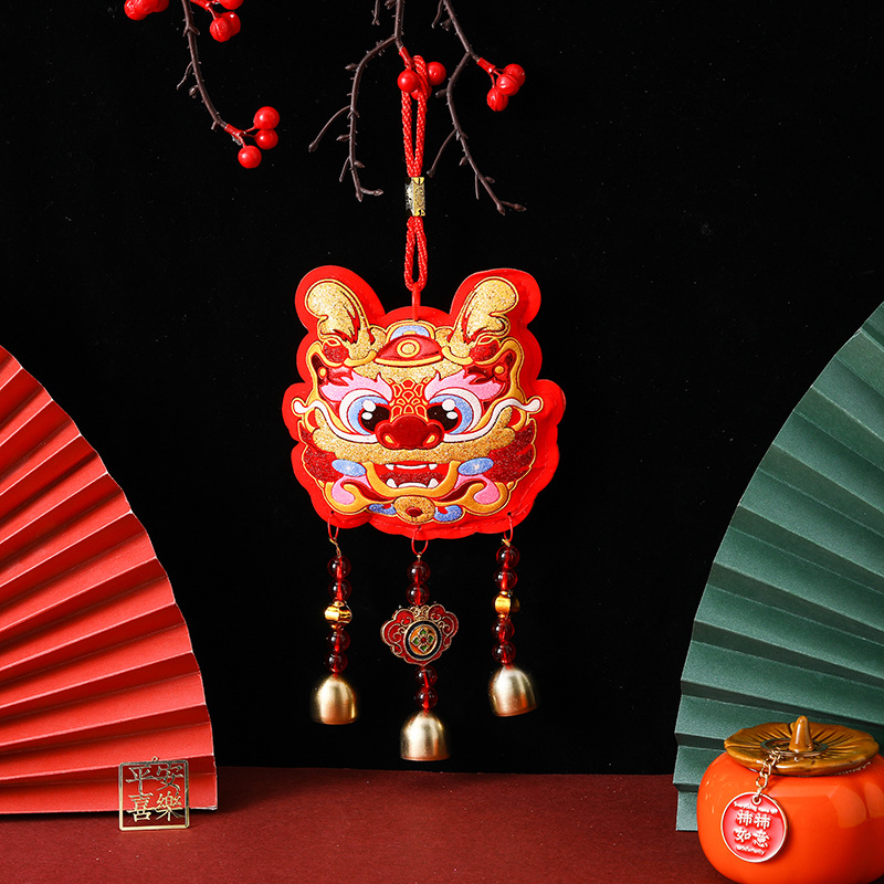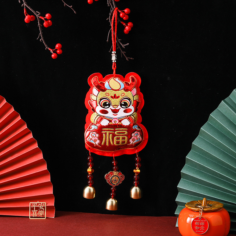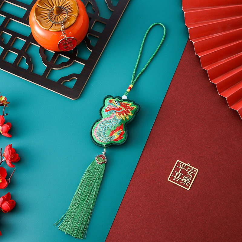 2024龙年香包风铃中国风刺绣风铃挂件福袋香囊亮片铃铛汽车挂件