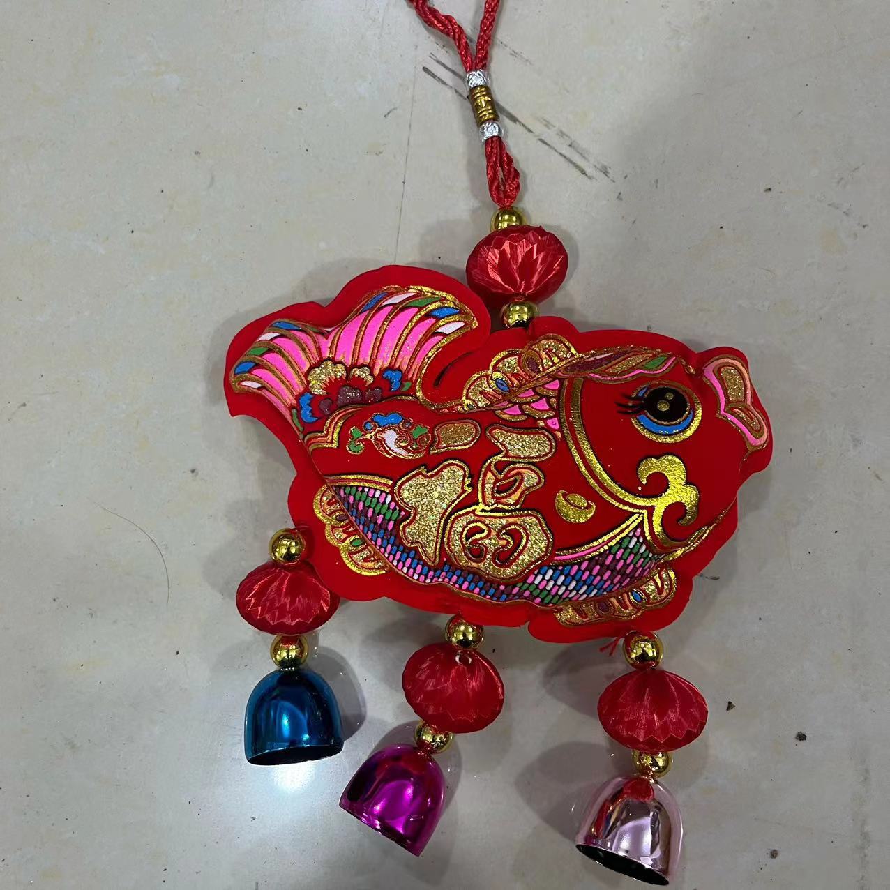 【说明】:双面、绣花布棉布、木鱼 木珠、金色风铃等搭配组合而成