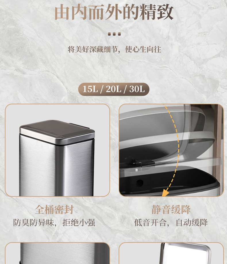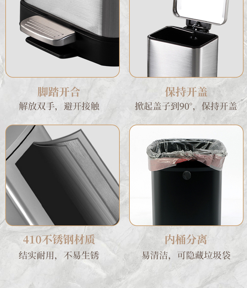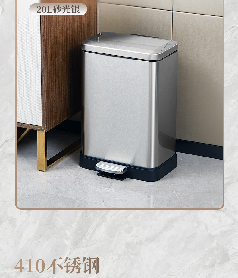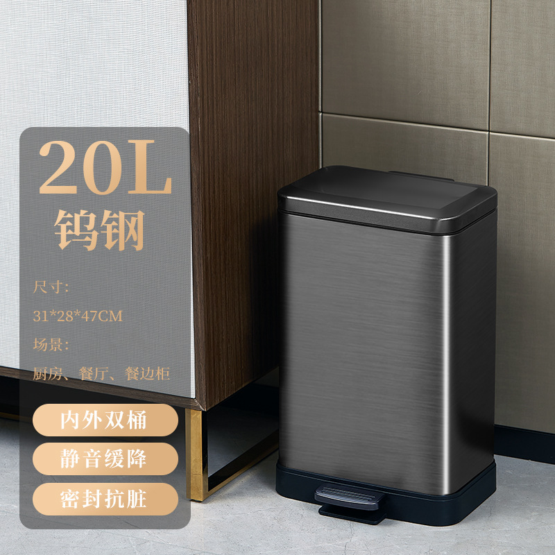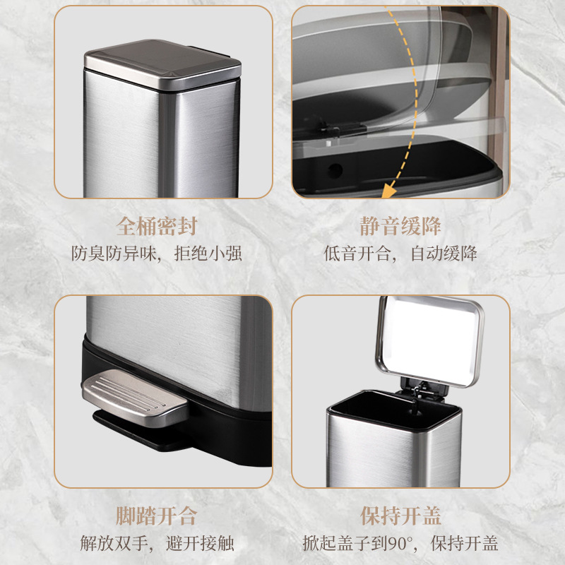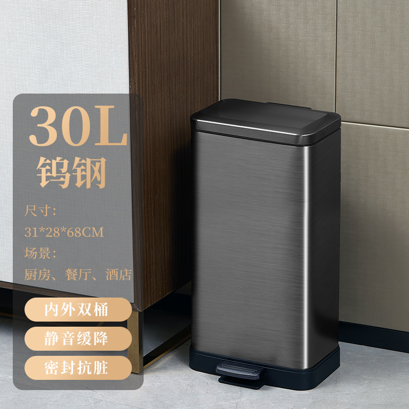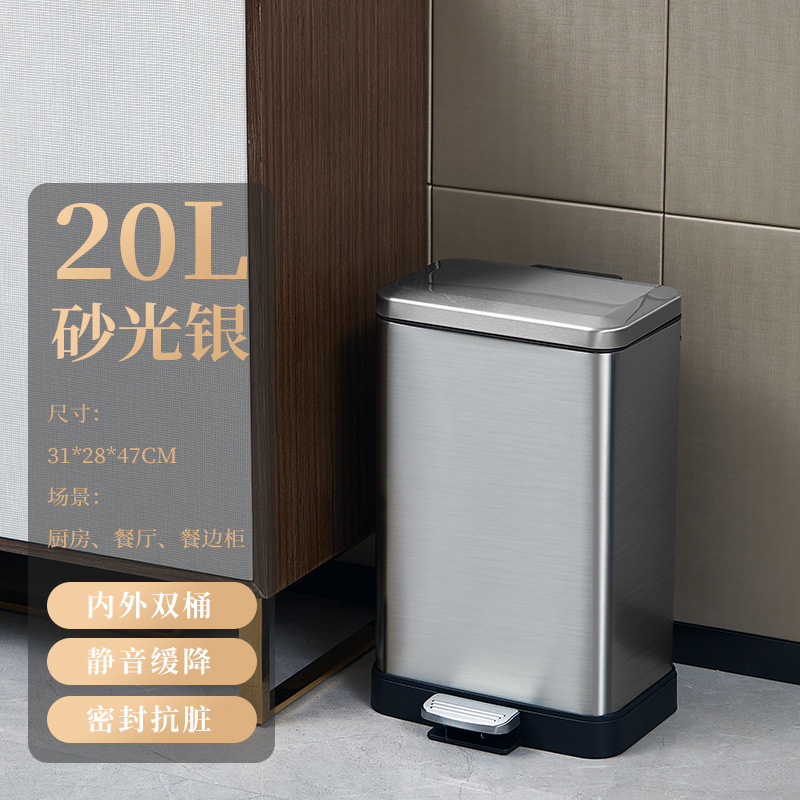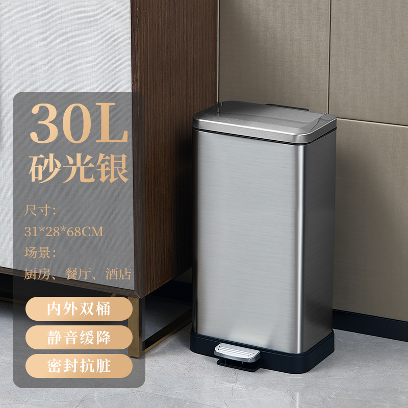 脚踏式大容量不锈钢垃圾桶商用酒店厨房户外缓降翻盖垃圾桶批发