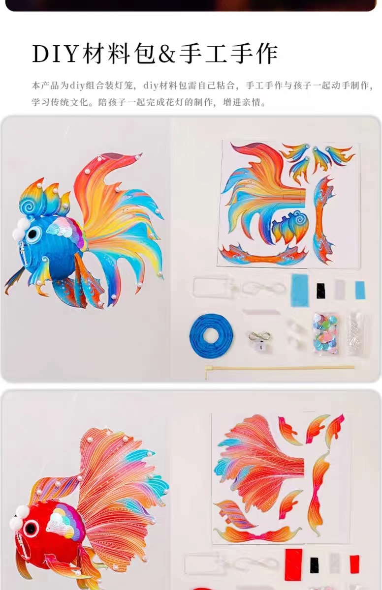 中秋新年花灯金鱼灯笼非遗手工制作创意diy材料包儿童手提锦鲤灯