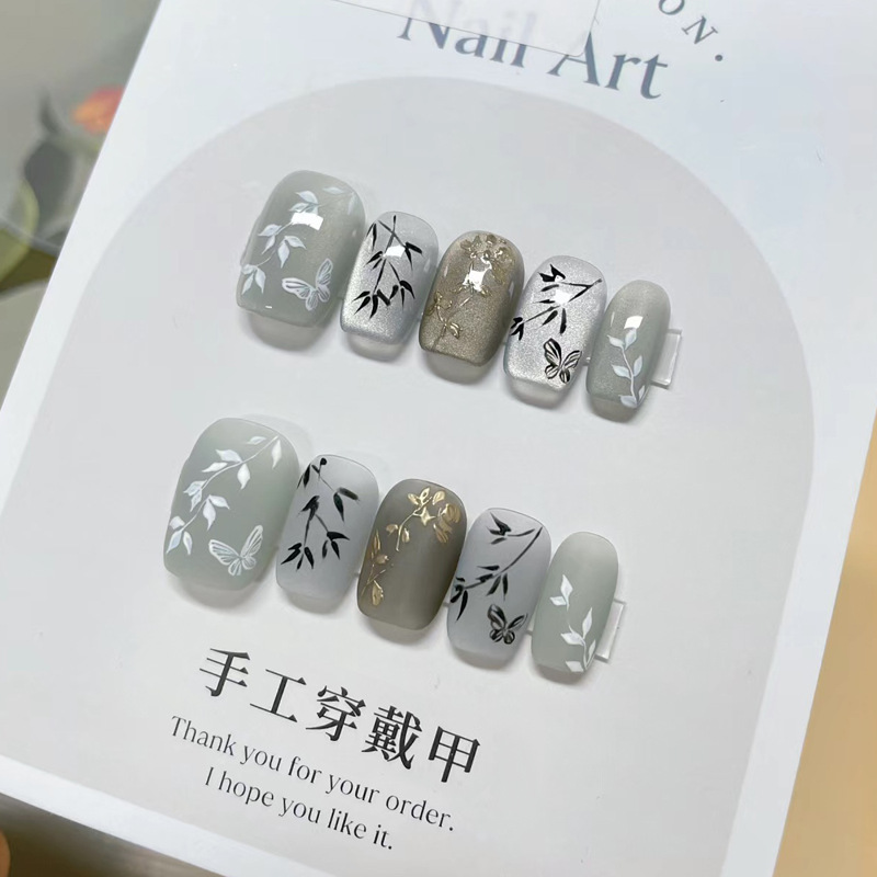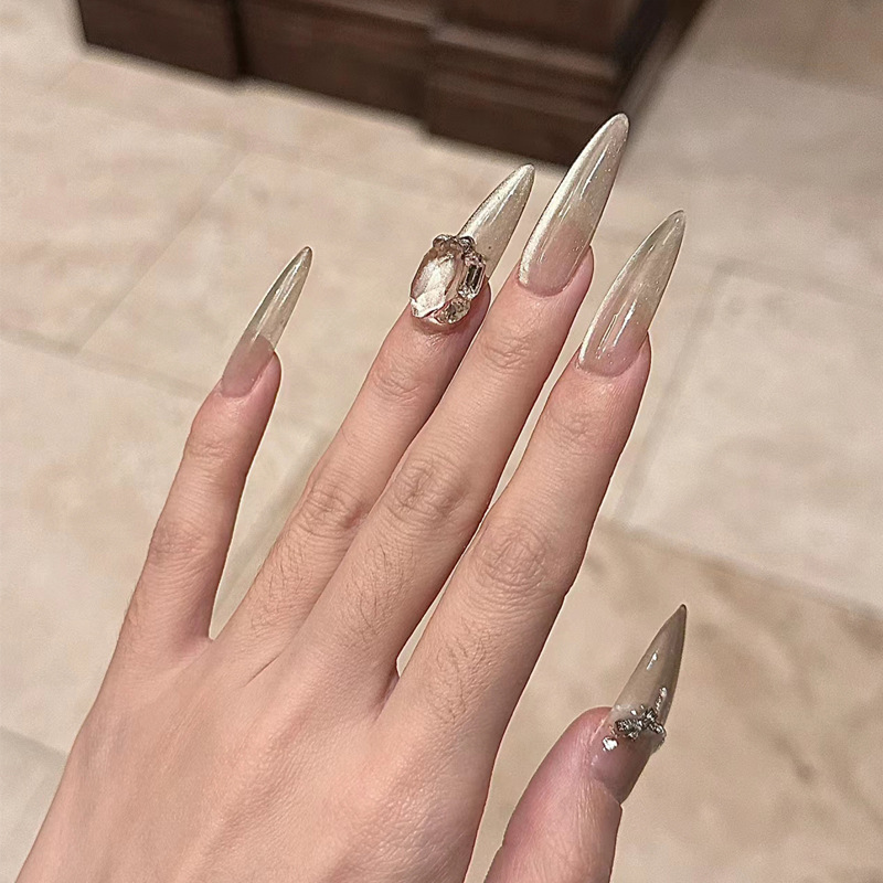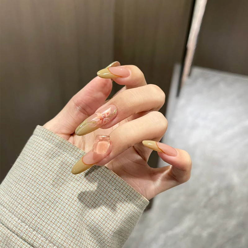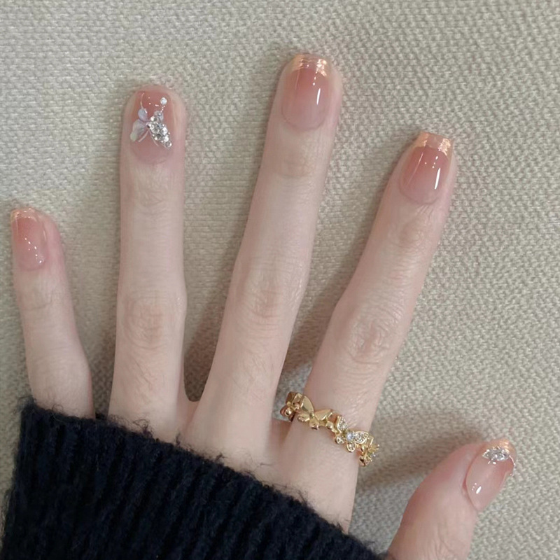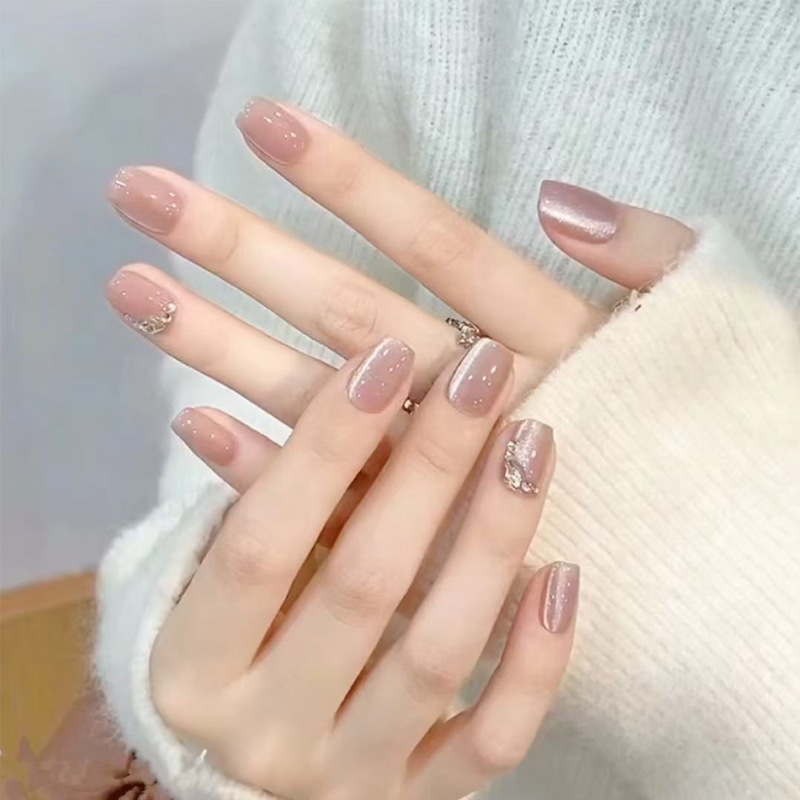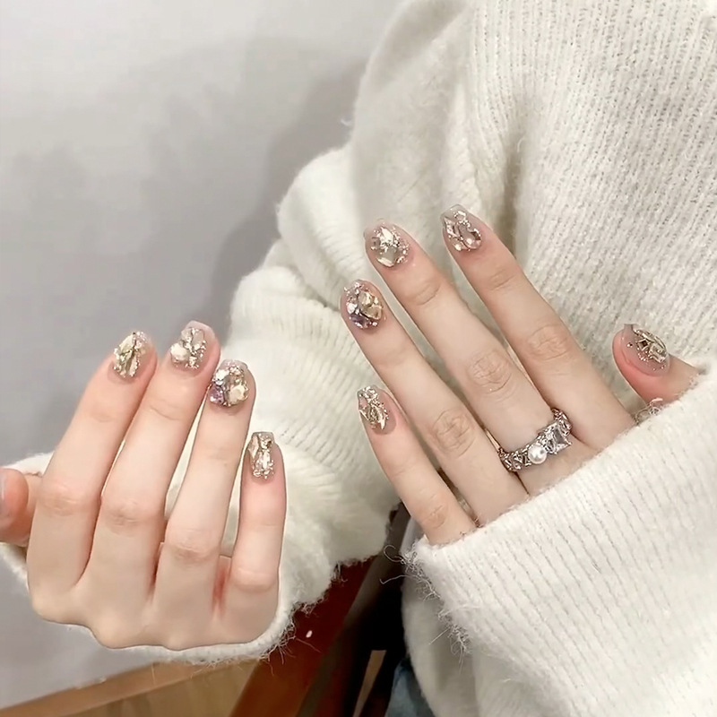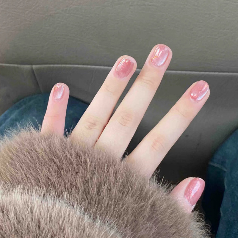 手工穿戴甲小红书爆款中芭蕾甲魔镜粉鎏金美甲成品可拆卸指甲贴片