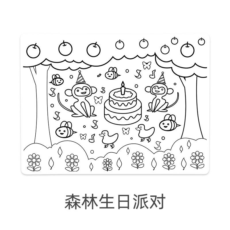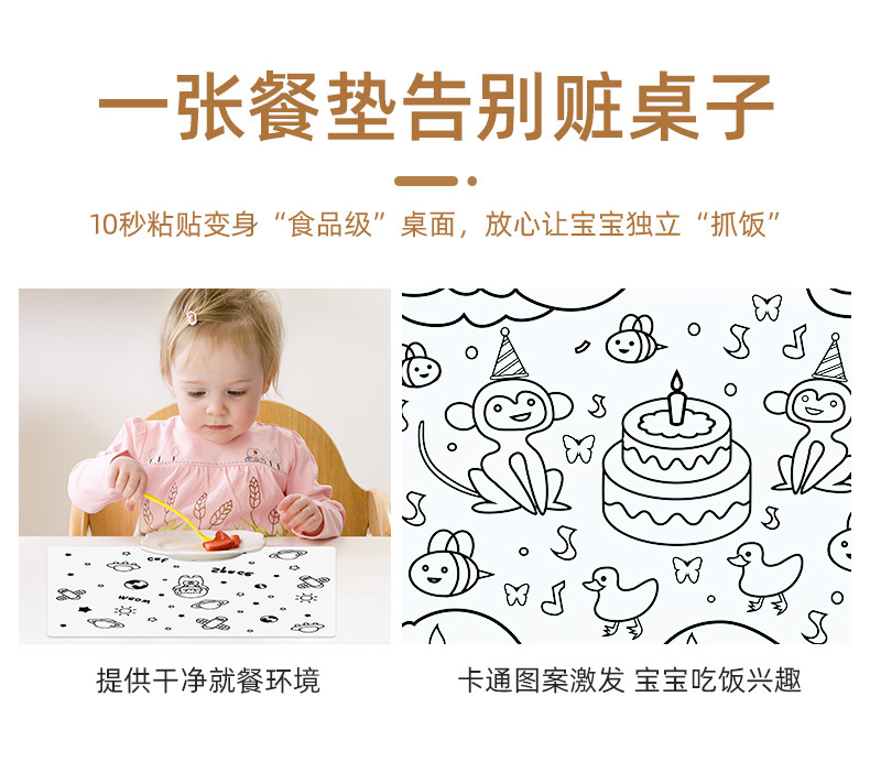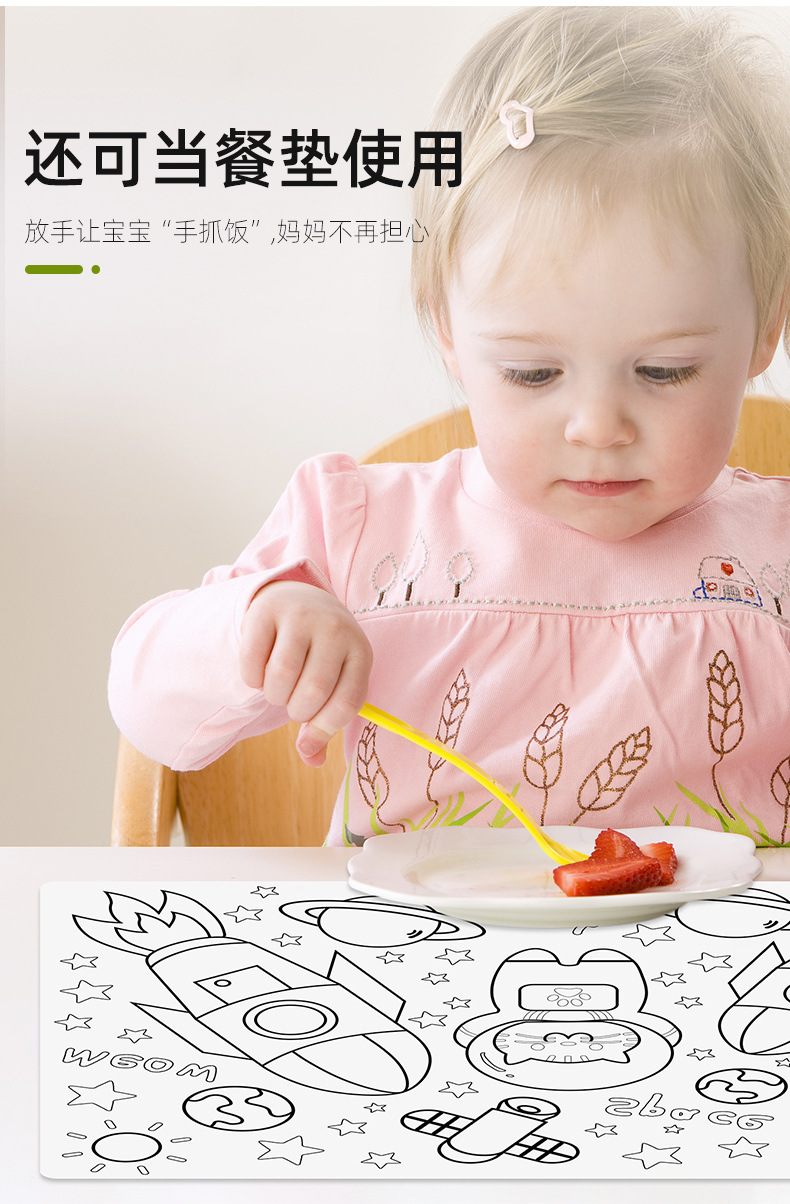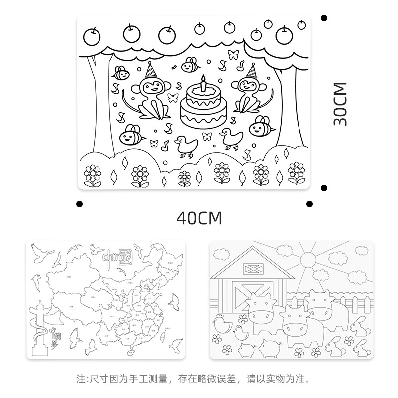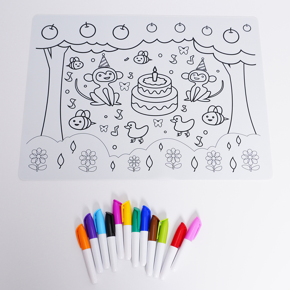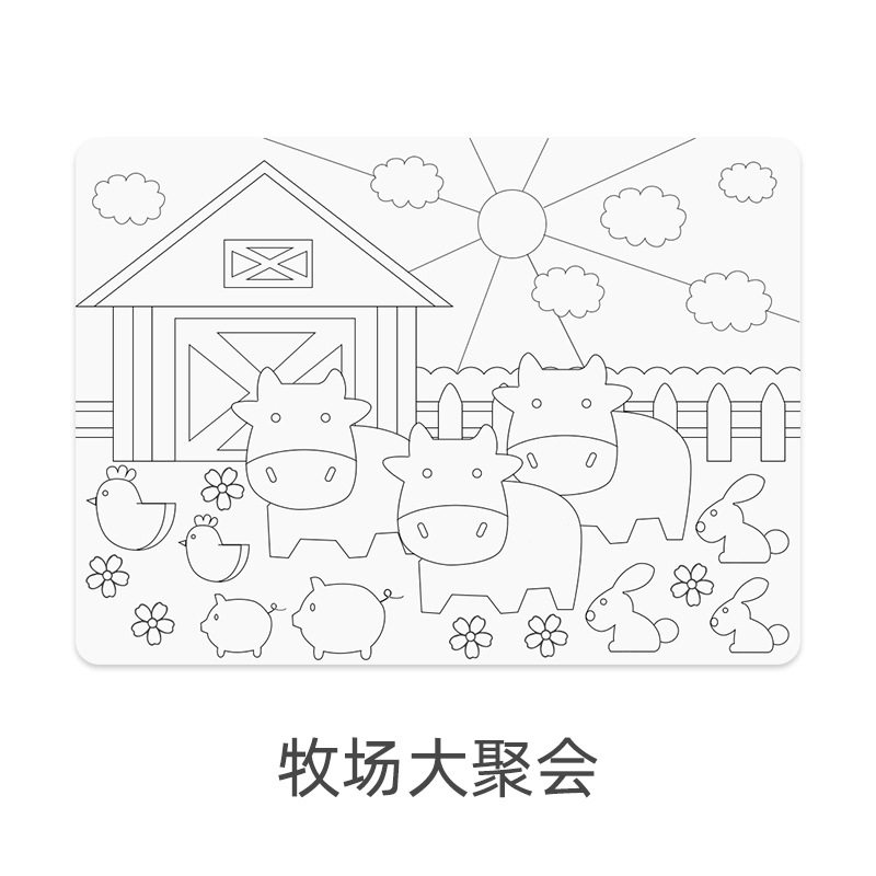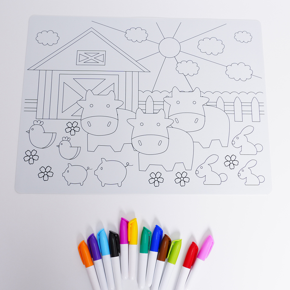 跨境儿童硅胶涂鸦垫卡通牧场派对图案水彩笔涂鸦可水洗硅胶餐桌垫