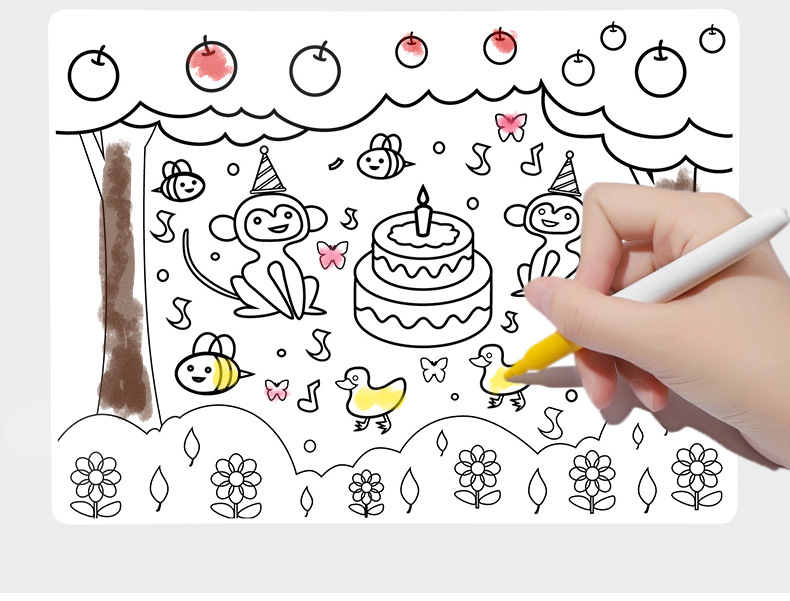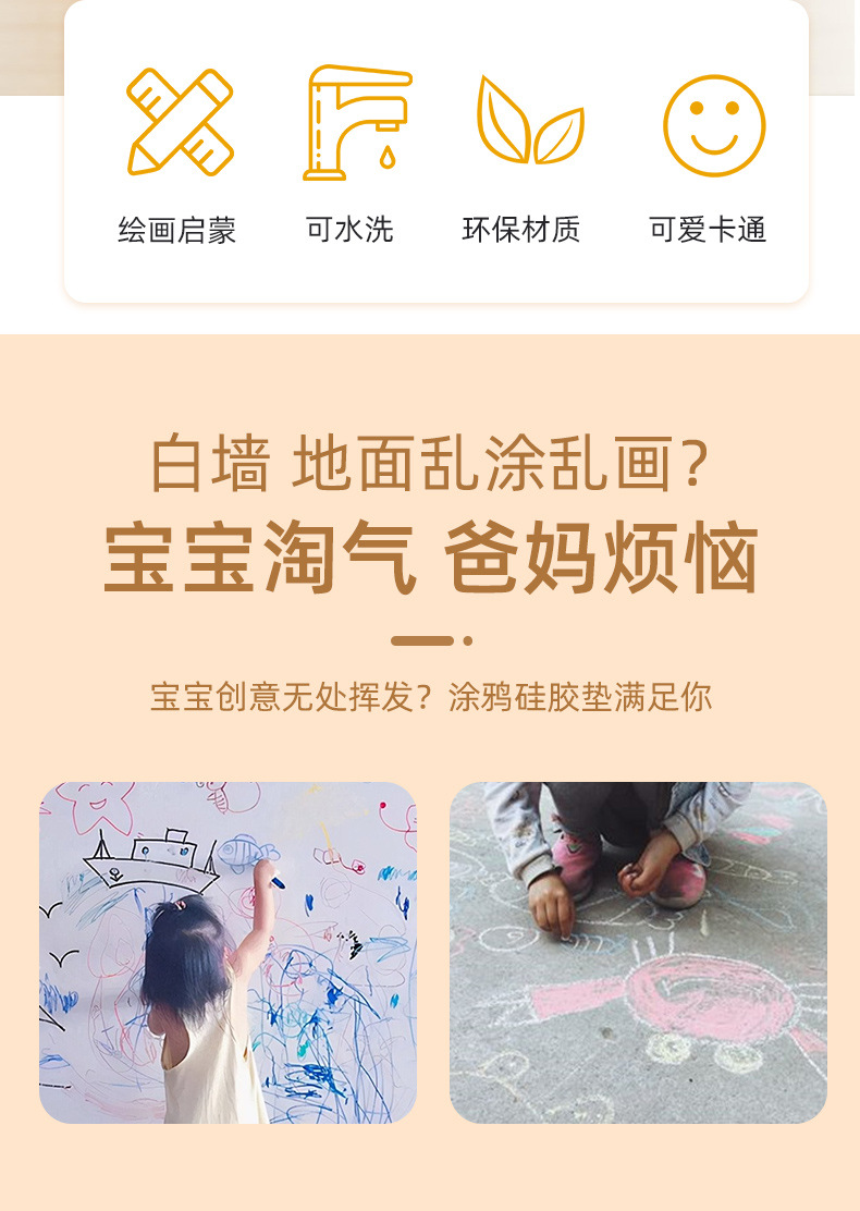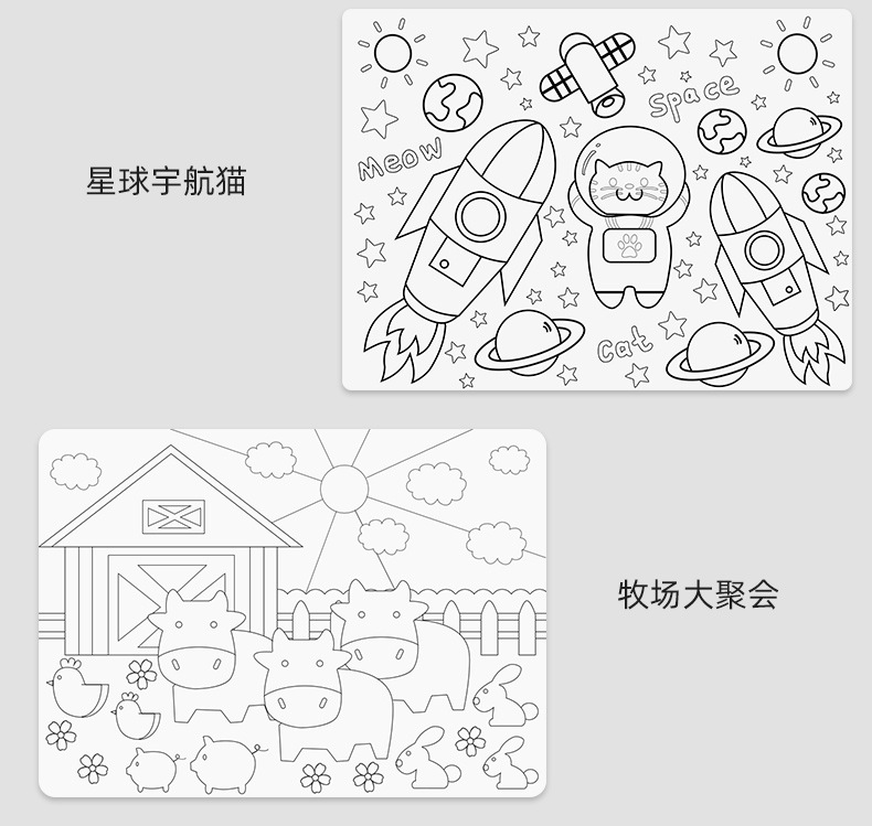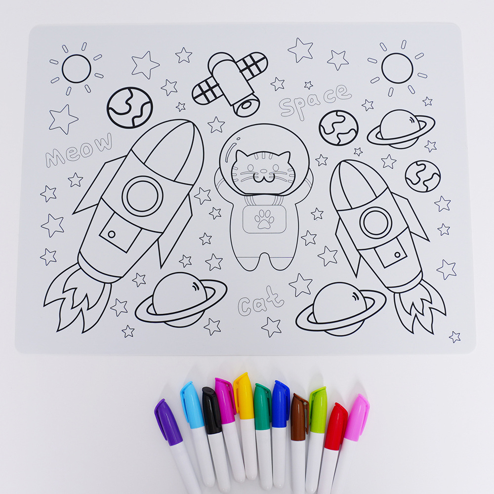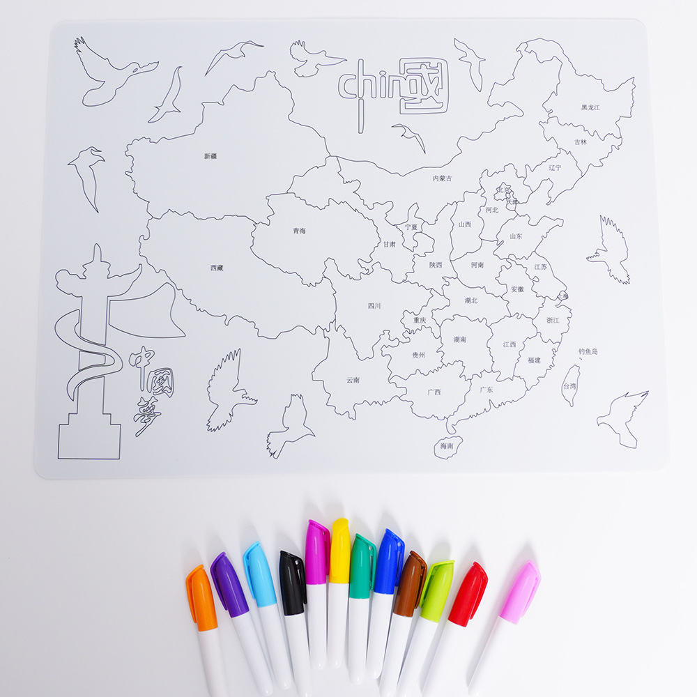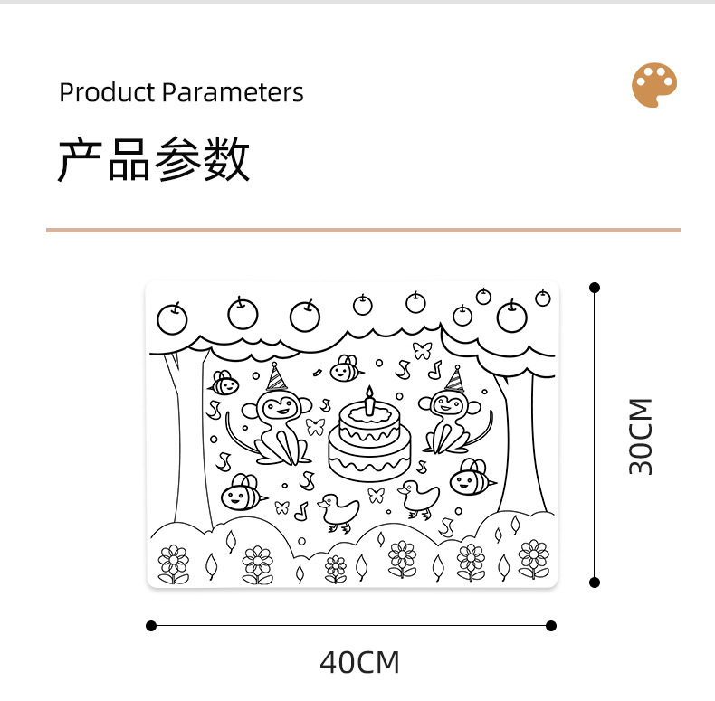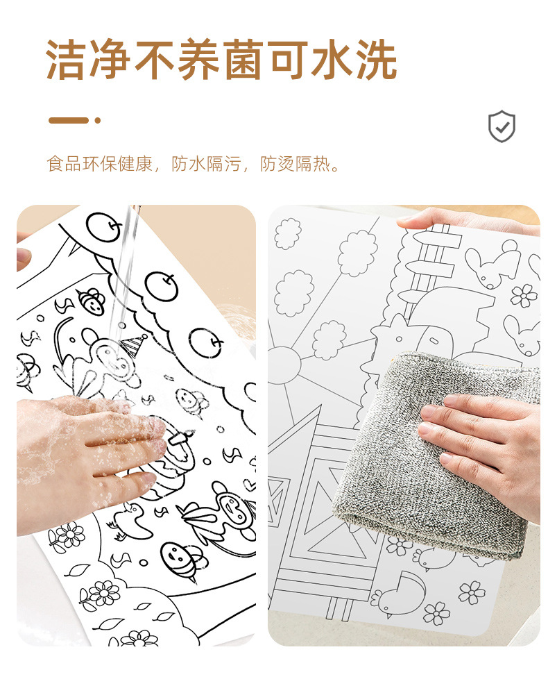跨境儿童硅胶涂鸦垫卡通牧场派对图案水彩笔涂鸦可水洗硅胶餐桌垫