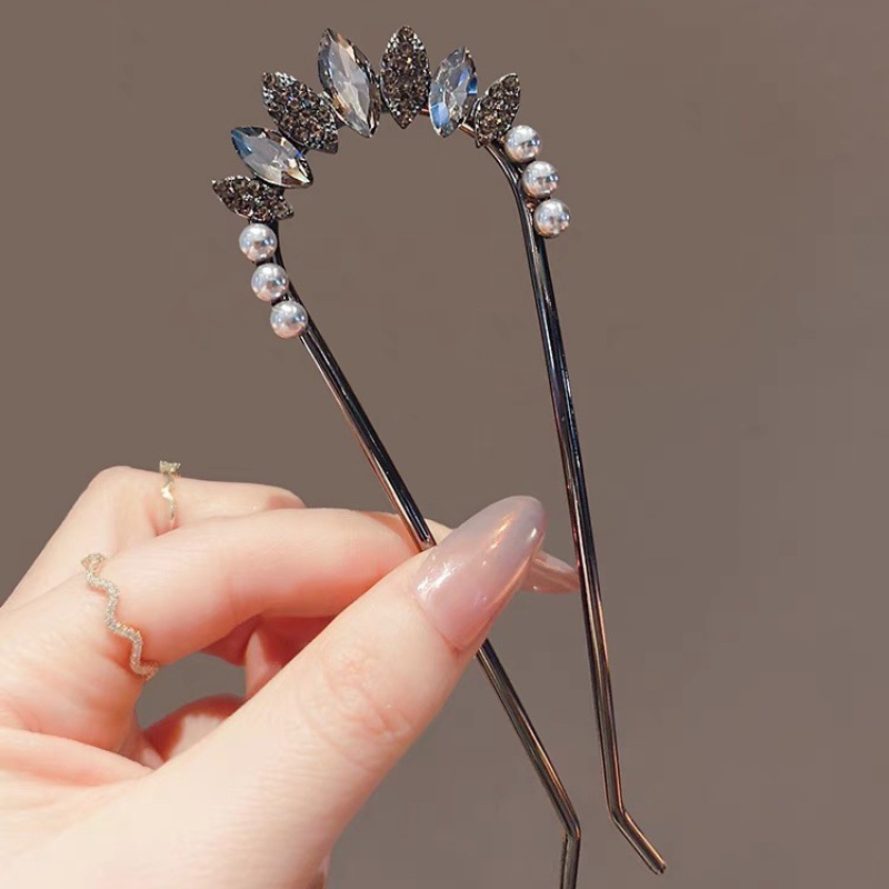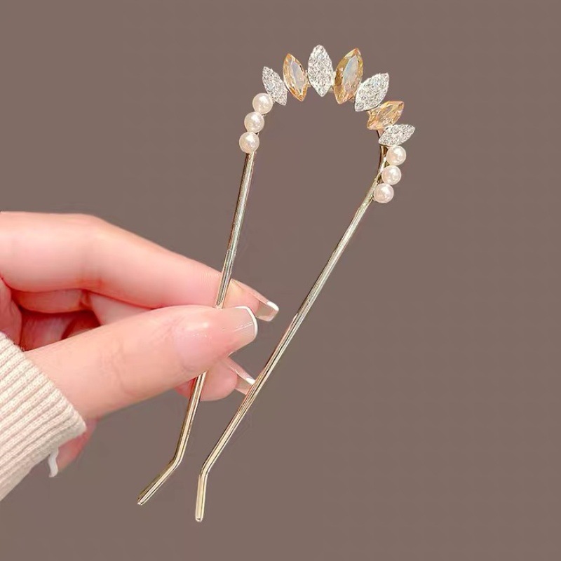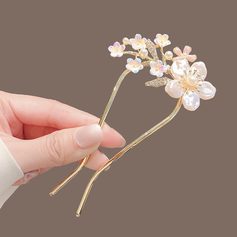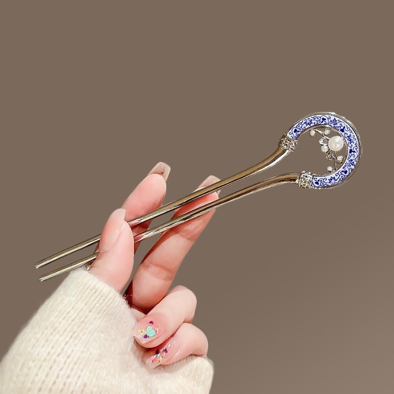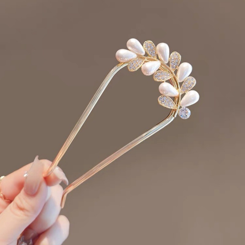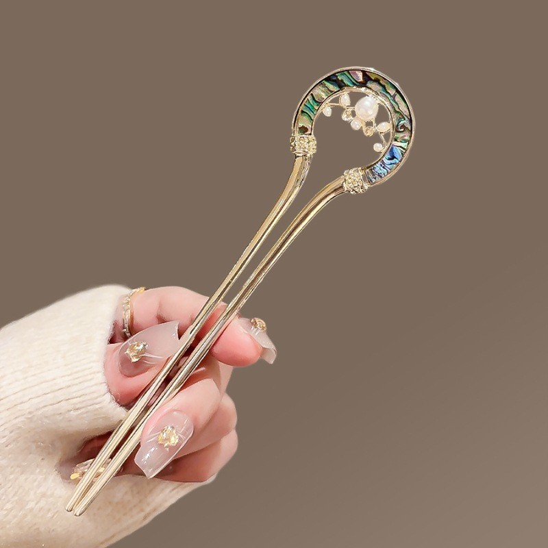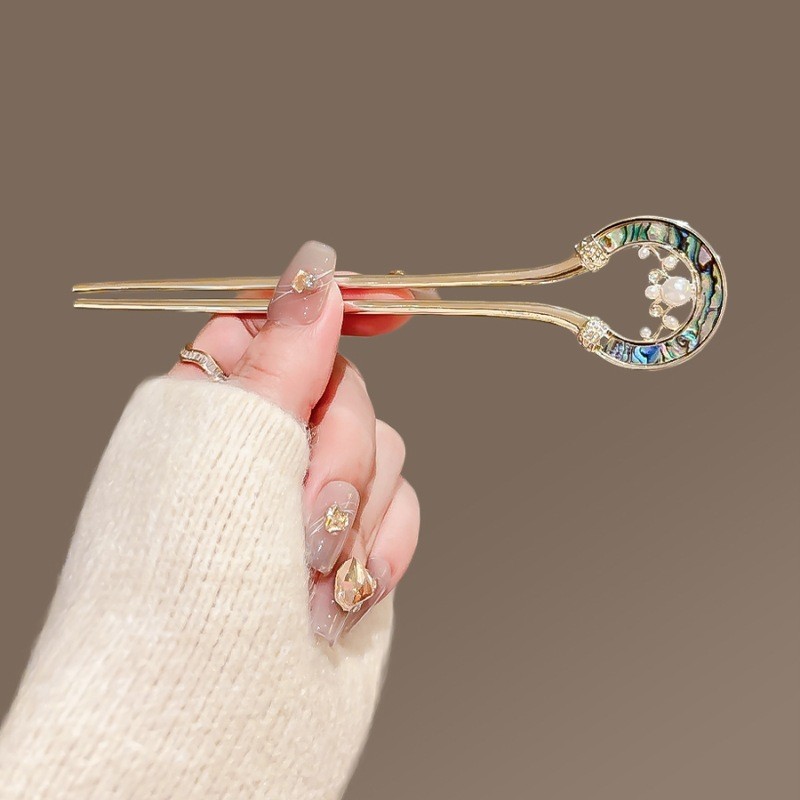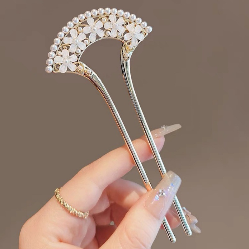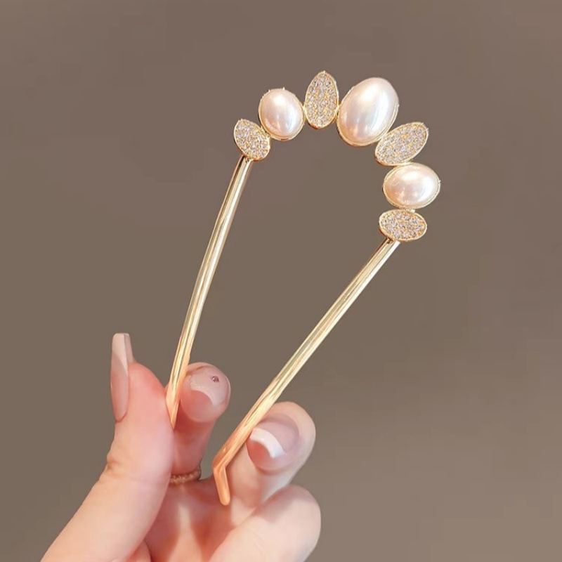 高级感珍珠U型发簪女2024新款后脑勺新中式盘发簪子头饰古风发钗