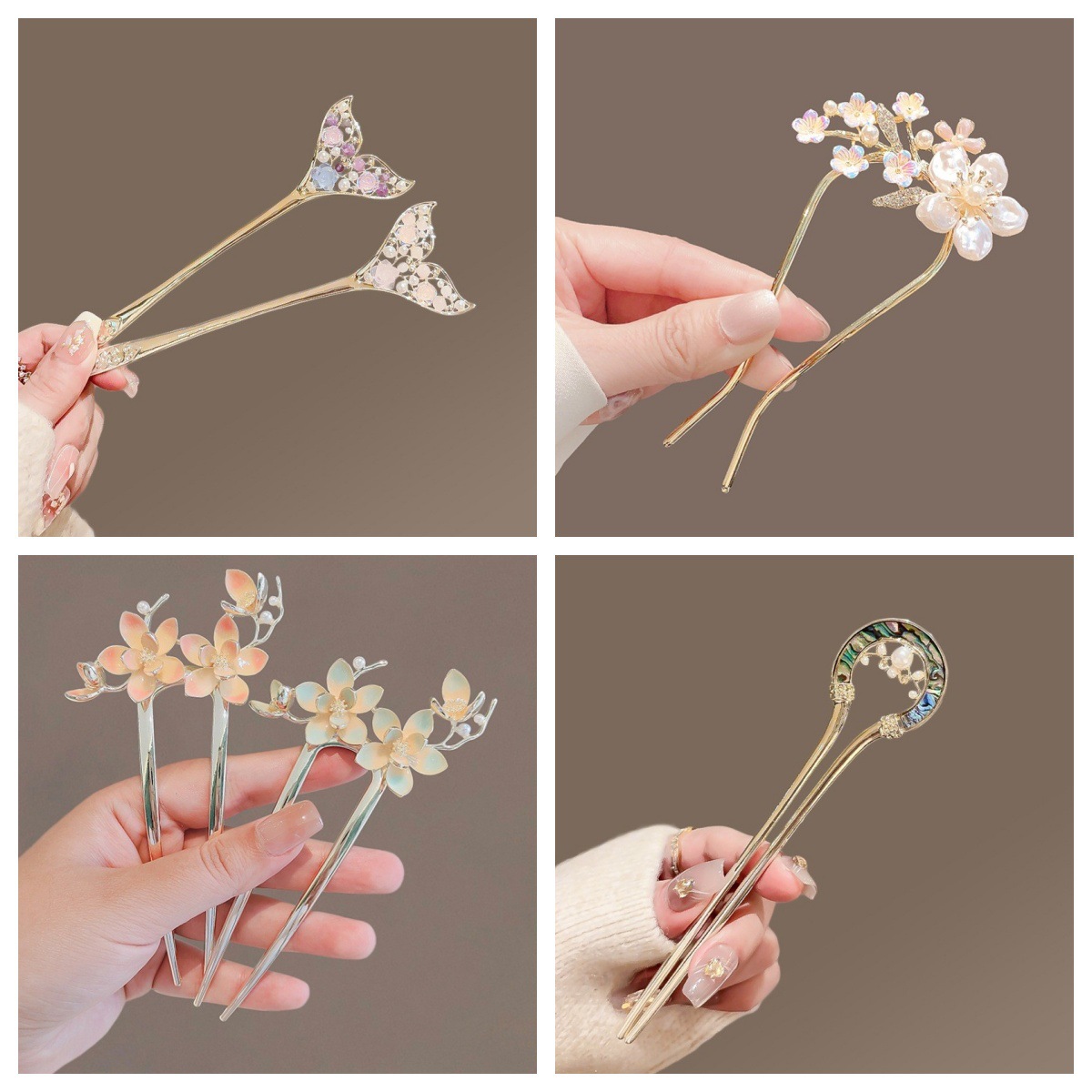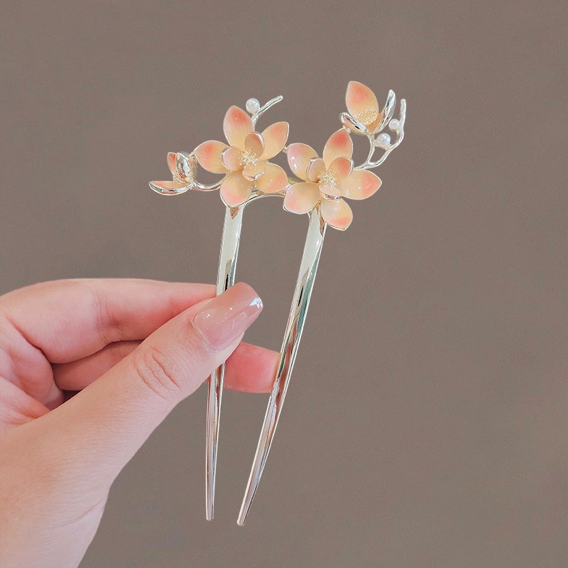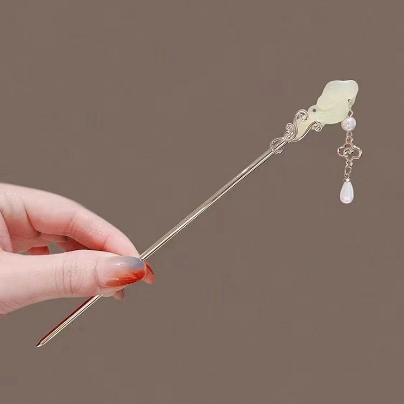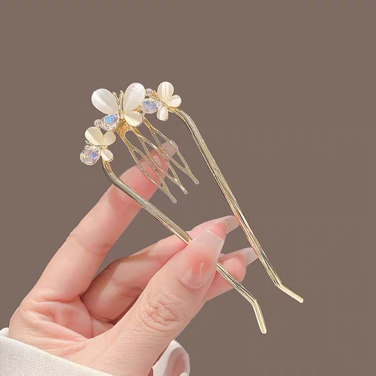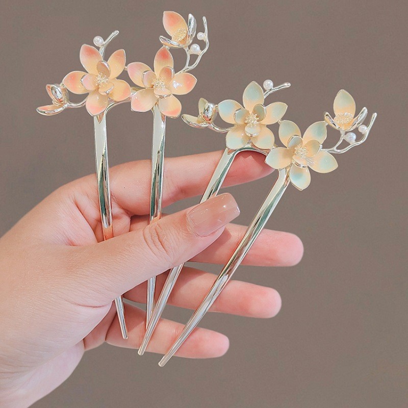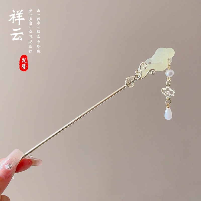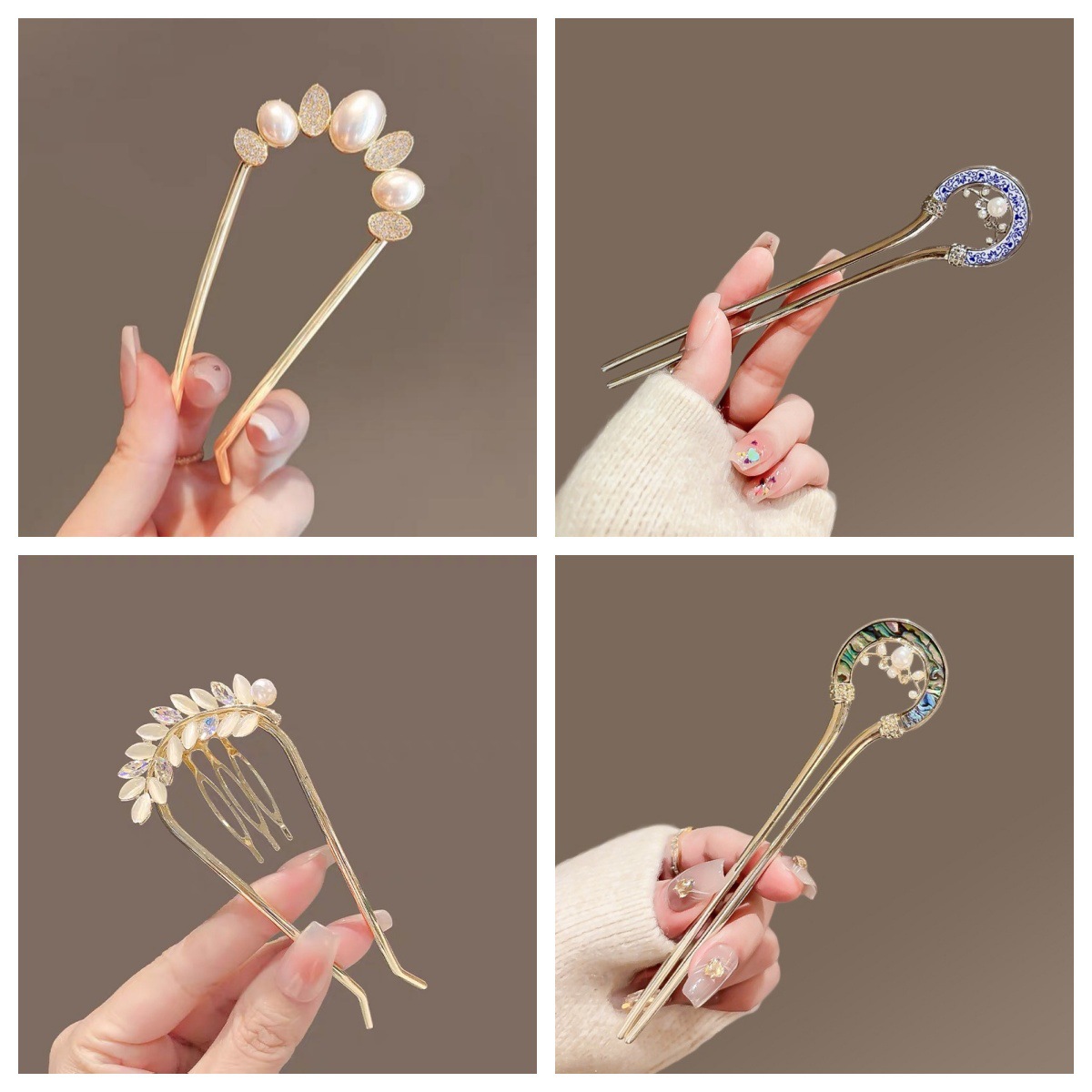 高级感珍珠U型发簪女2024新款后脑勺新中式盘发簪子头饰古风发钗