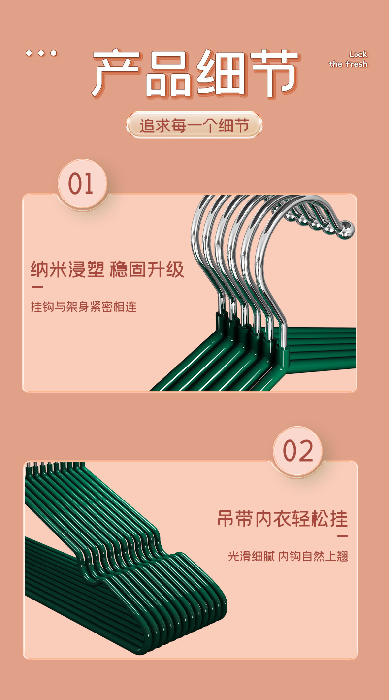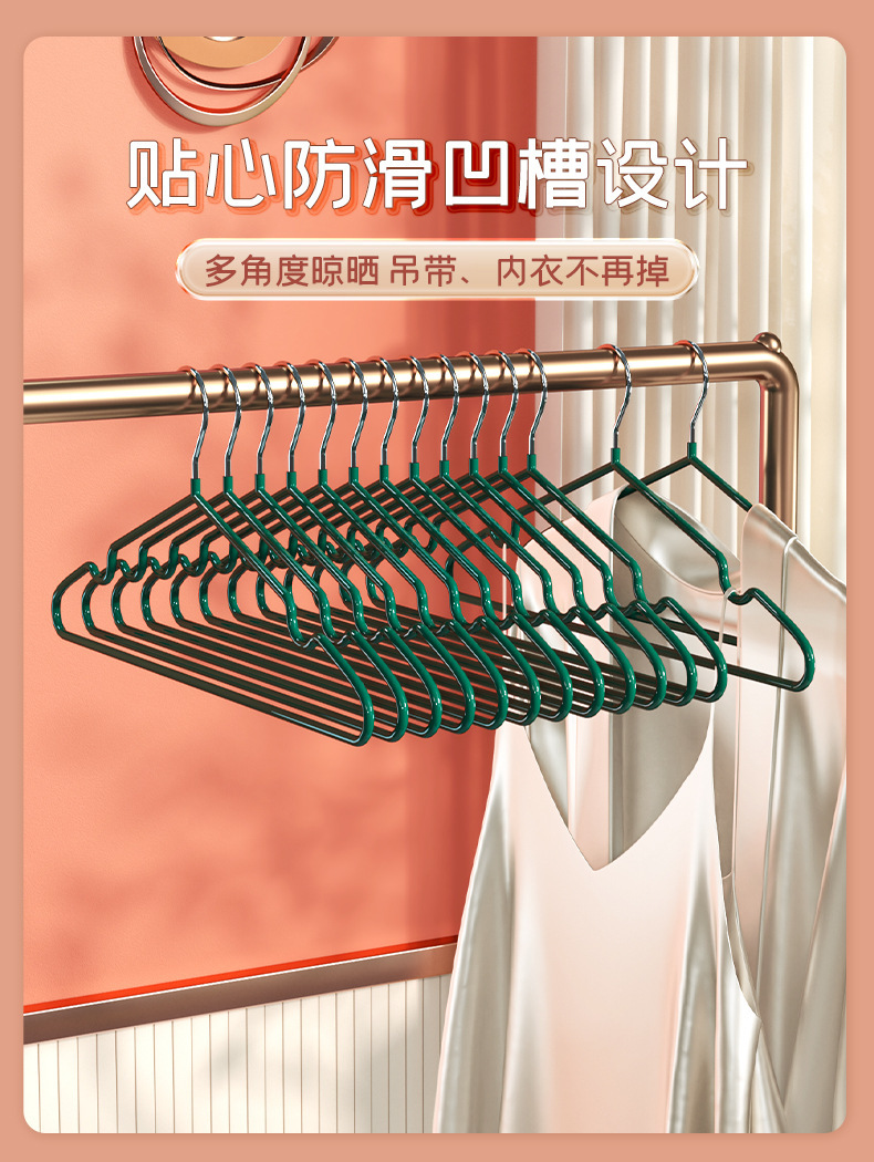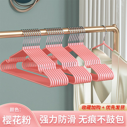 不锈钢加粗浸塑衣架家用防滑无痕衣挂成人轻奢学生宿舍衣服撑子架