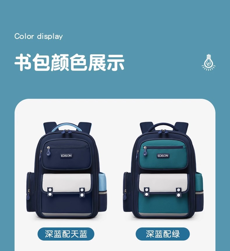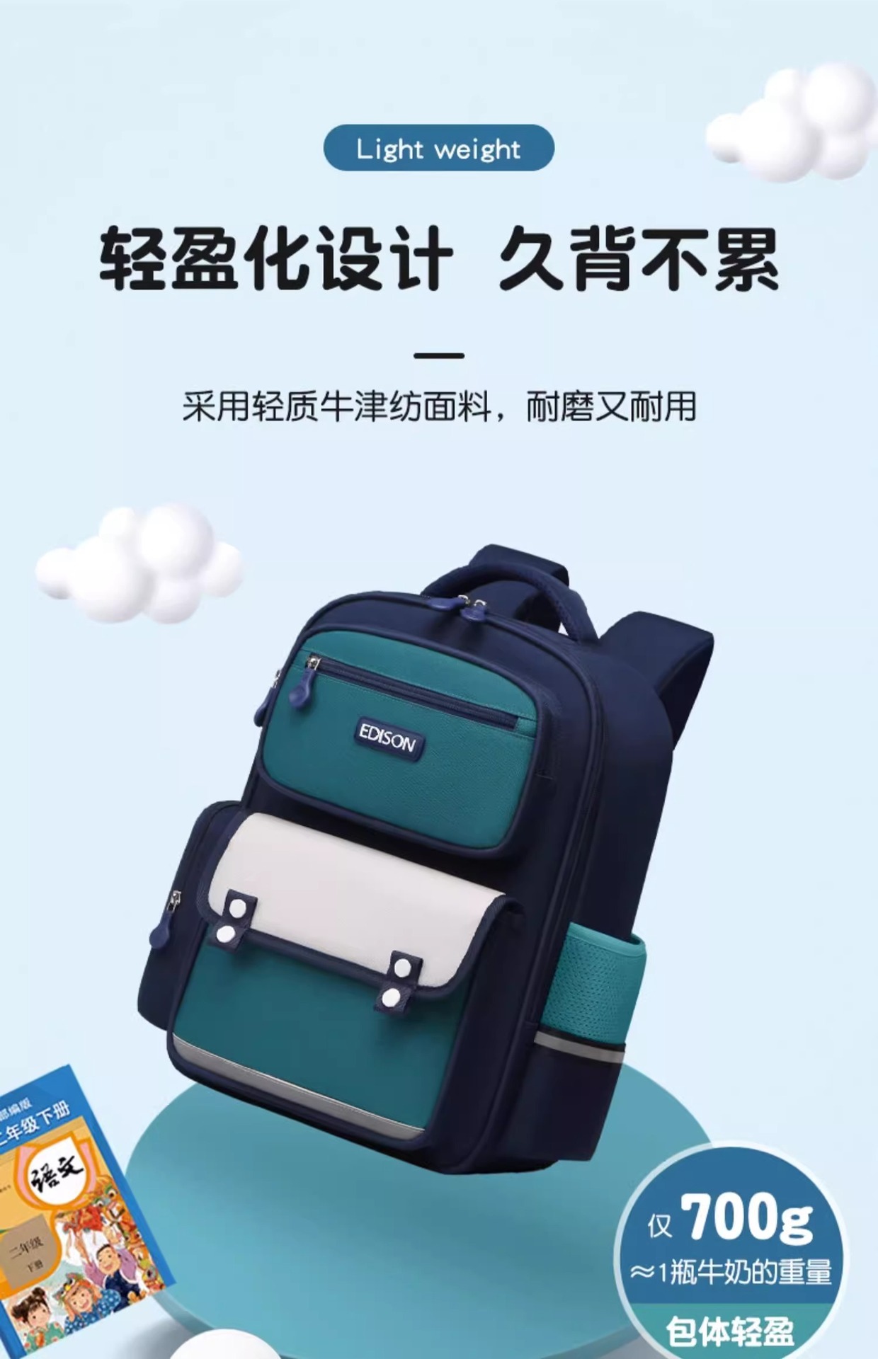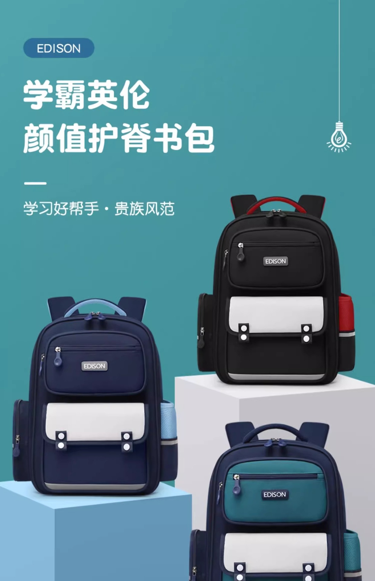 爱迪生儿童书包小学生男孩超轻1一6年级男生减负护脊男女