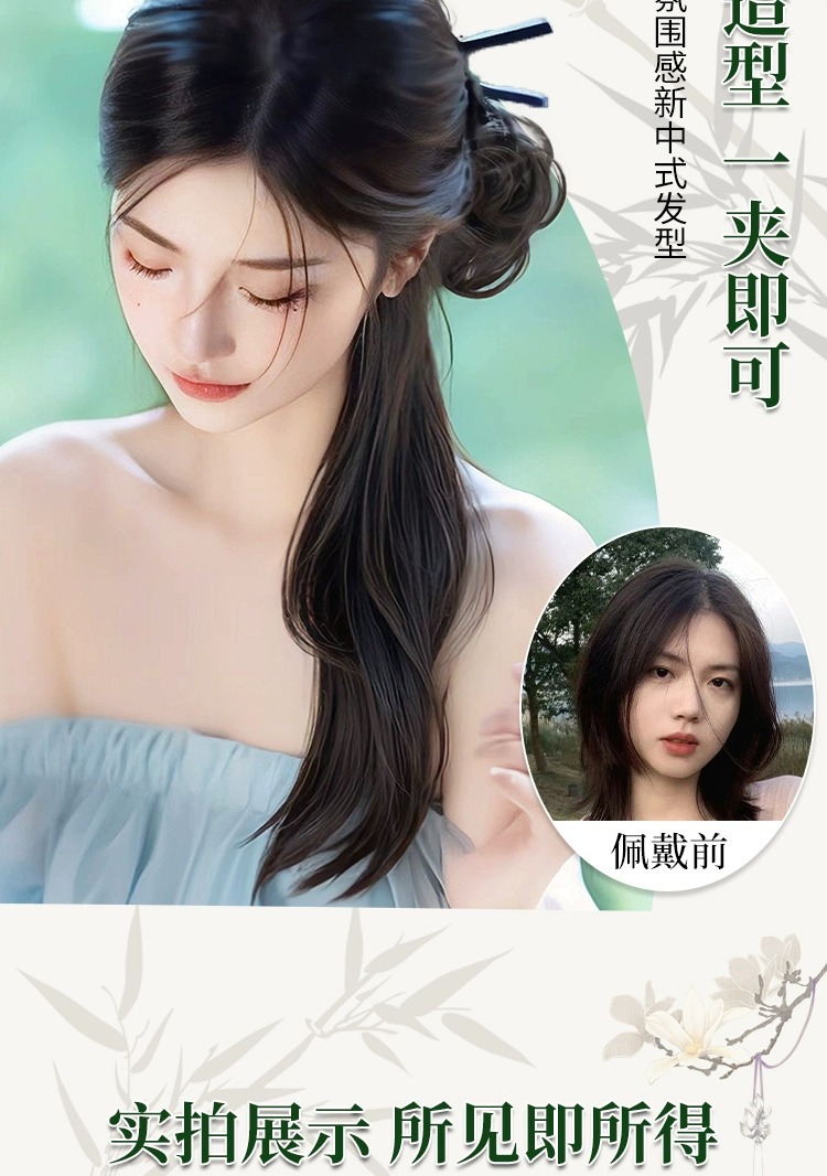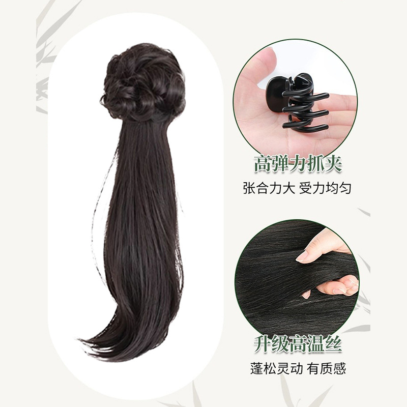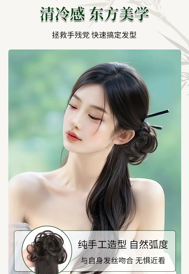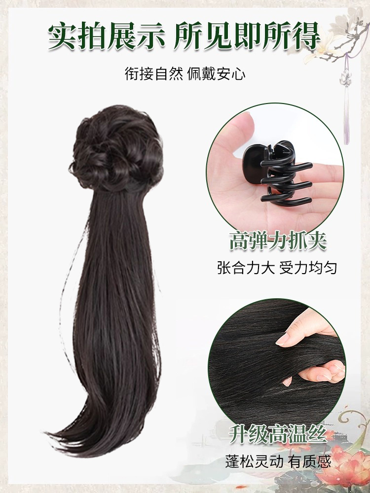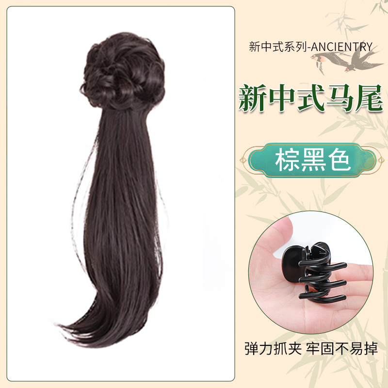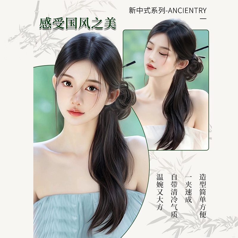 假发女马尾长发新中式假发抓夹轻国风微卷高马尾汉服旗袍假发辫子