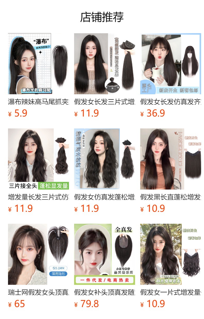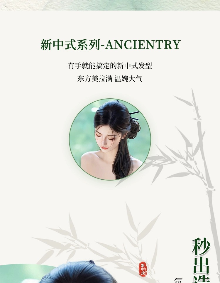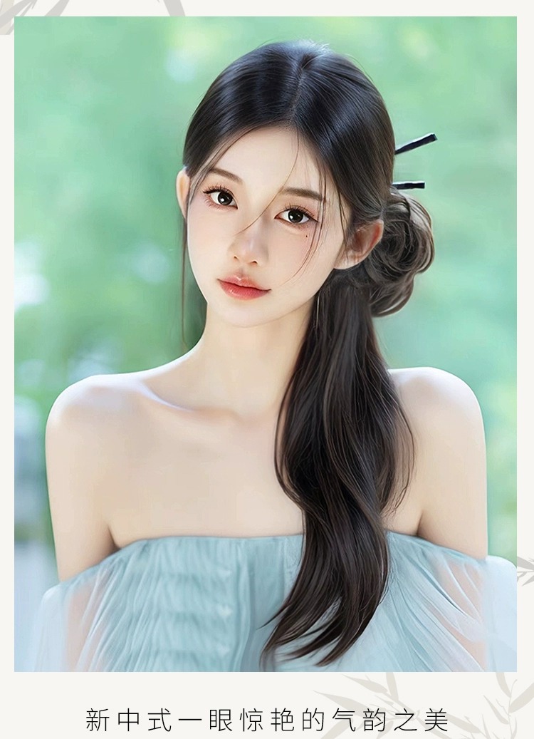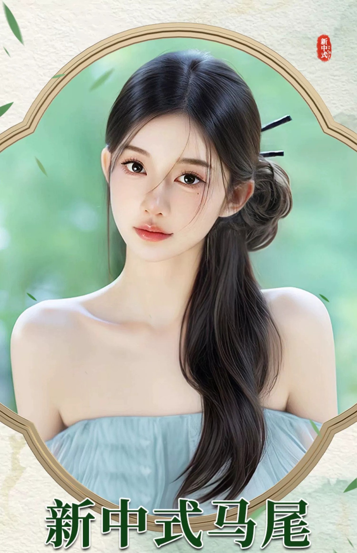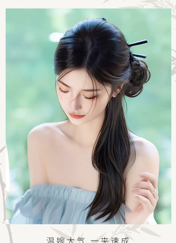 假发女马尾长发新中式假发抓夹轻国风微卷高马尾汉服旗袍假发辫子