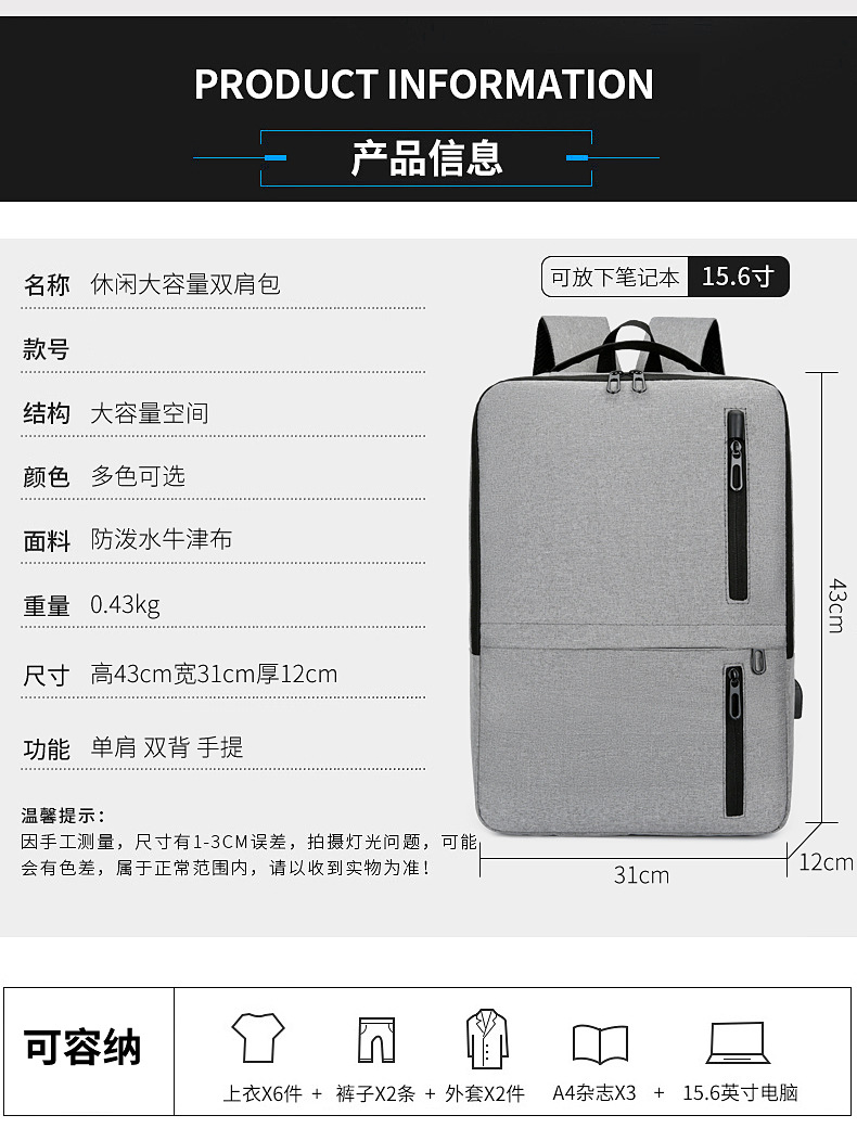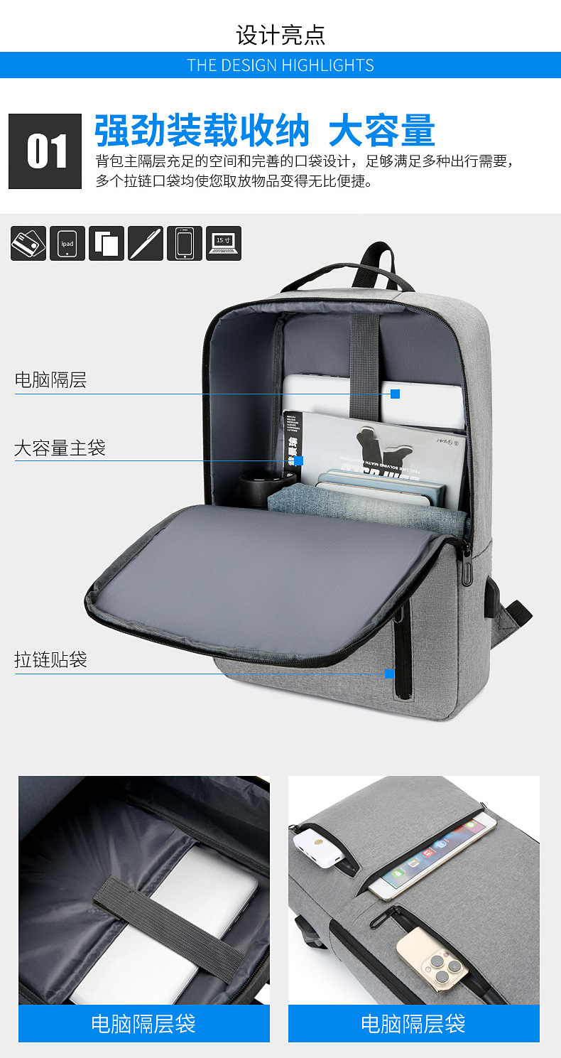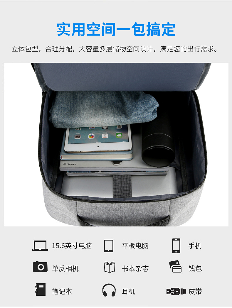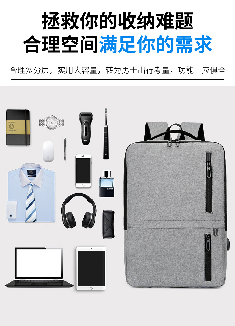 厂家直销安蝶箱包双肩背包USB通勤多功能电脑背包商务15.6大容量